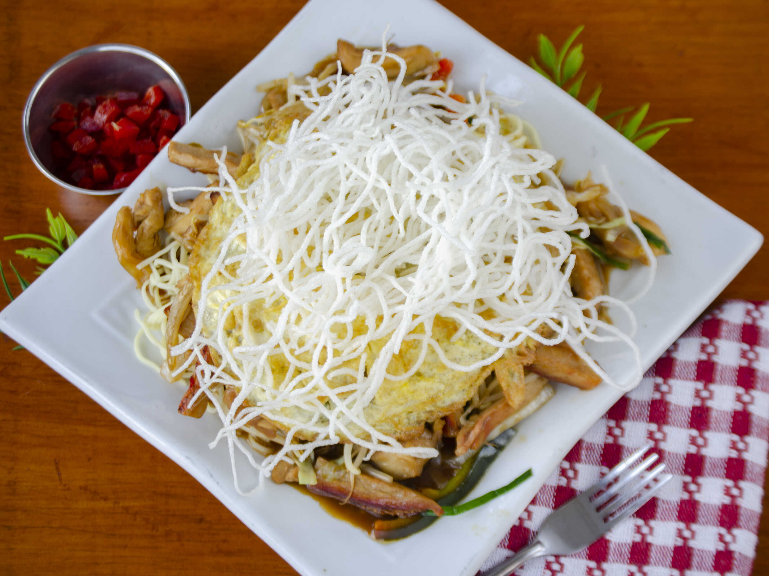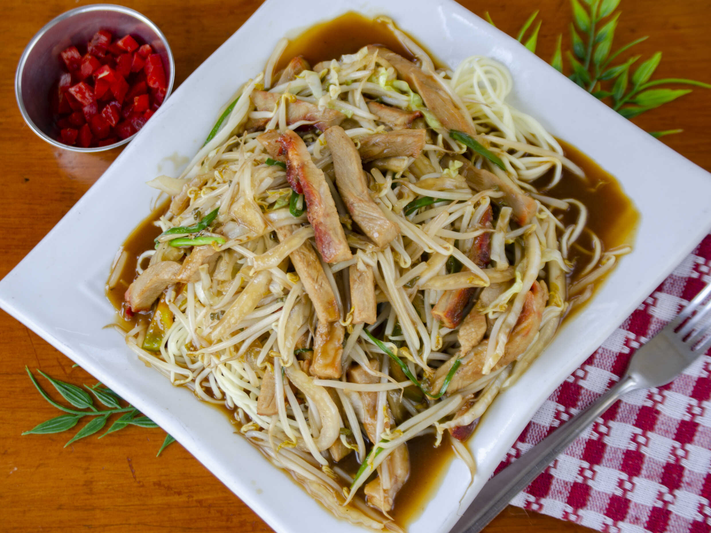 Cerdo, pollo, chancho, langostinos, pato, pimentón, cebolla y tallarín.