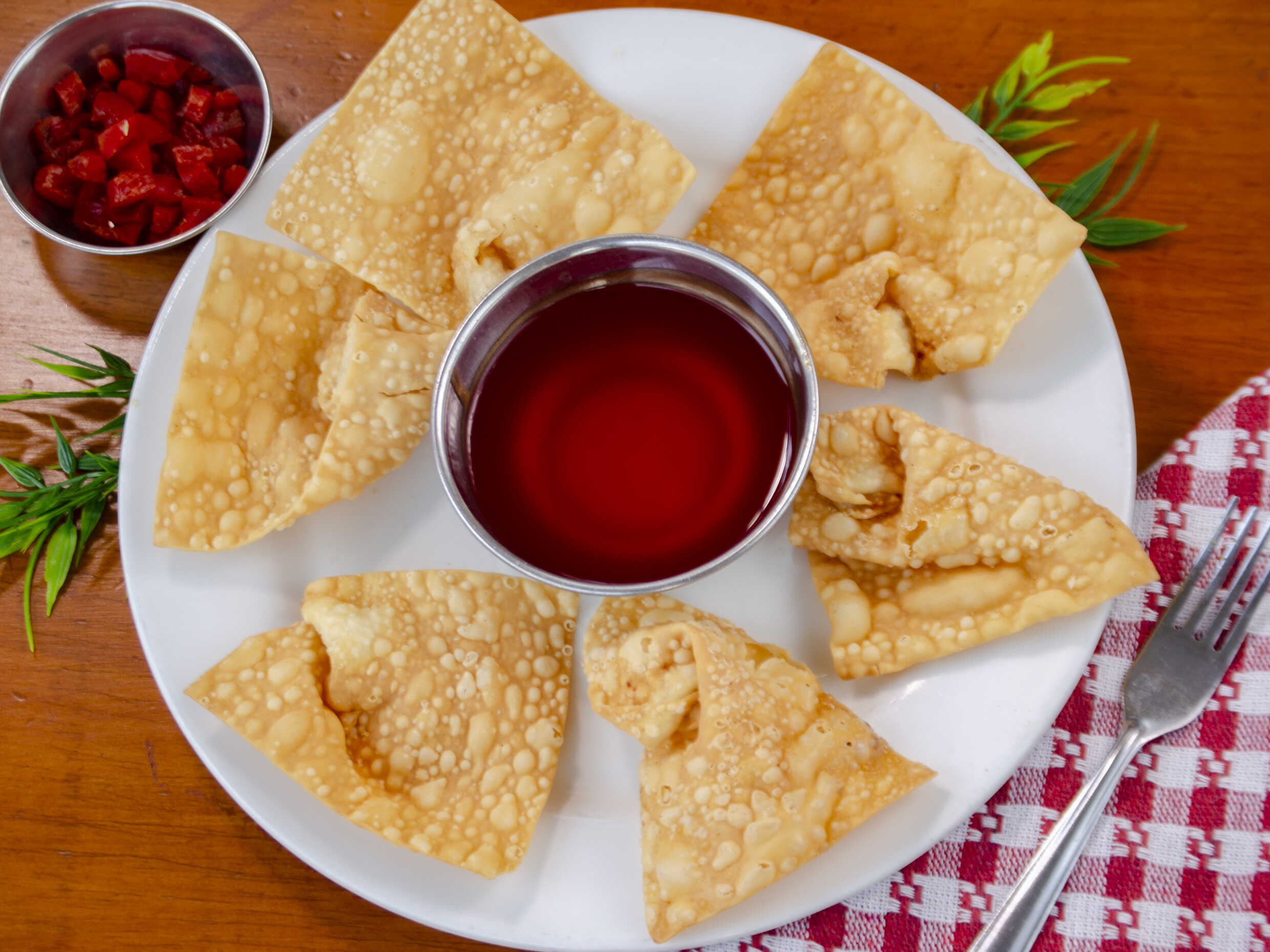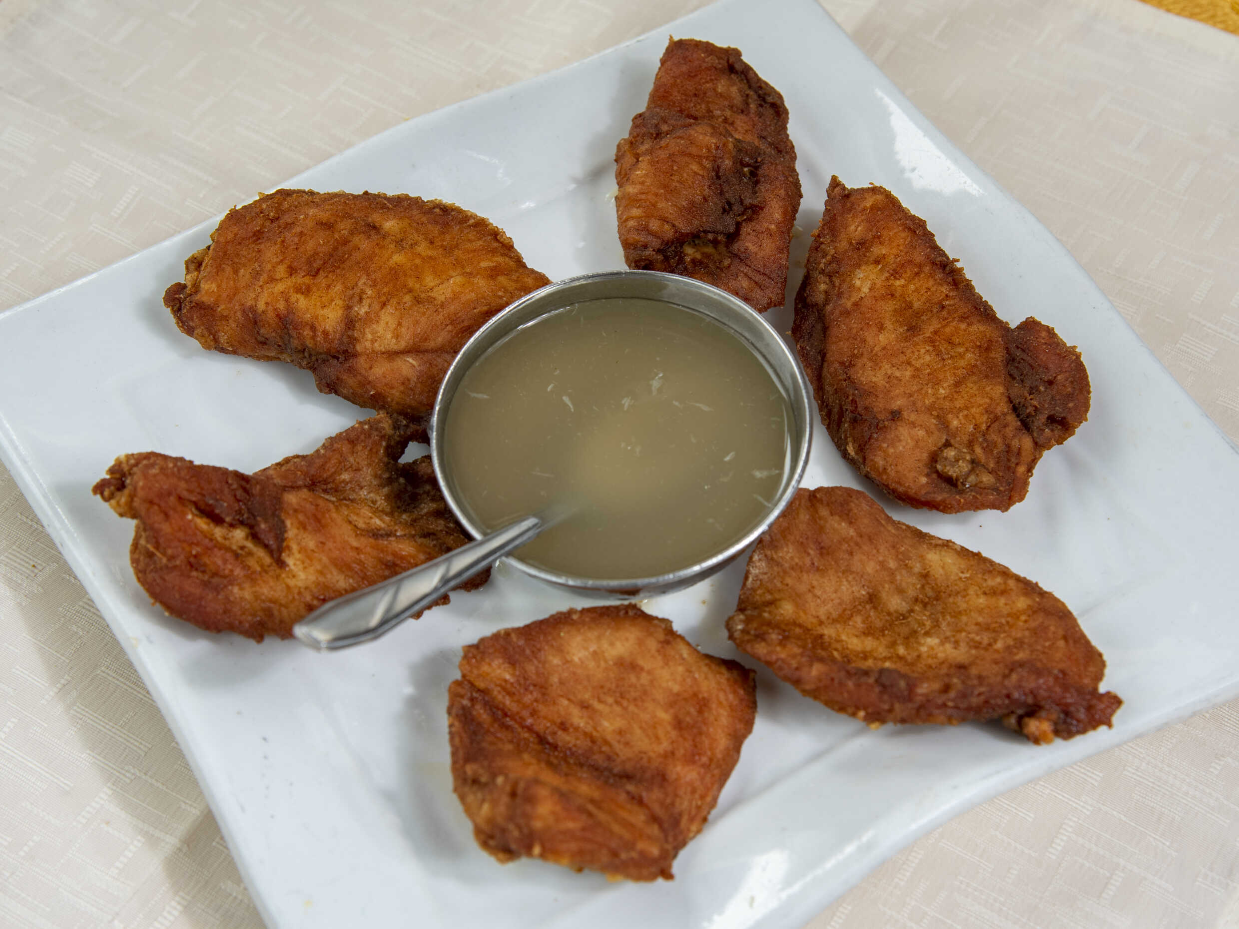 1 plato taypá, 1 kam lu wantan, 1 chi jau kay grande, 1 siu mai.