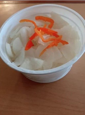 Nabo encurtido en rodajas con ají.