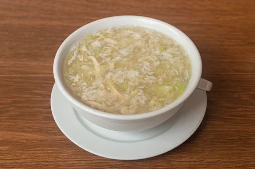 Sopa con pollo, verduras picadas y huevo batido.