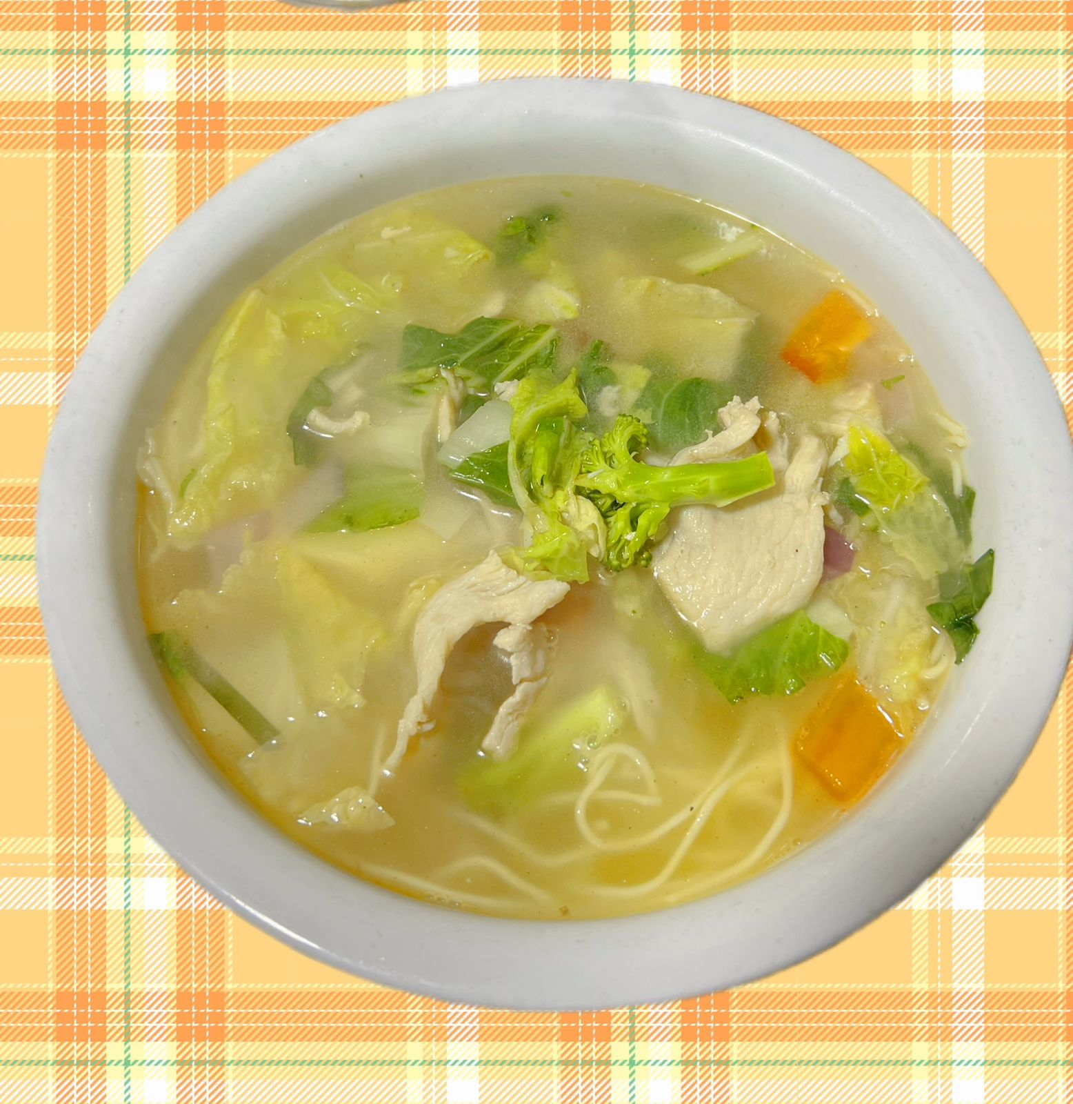 Sopa wantán de pollo con verduras y fideos