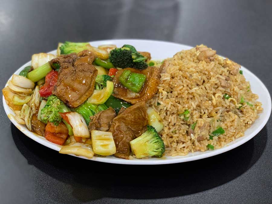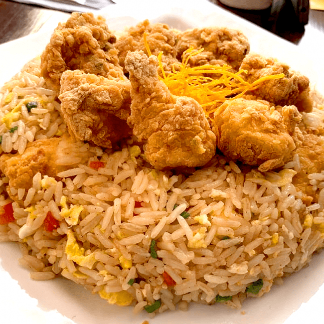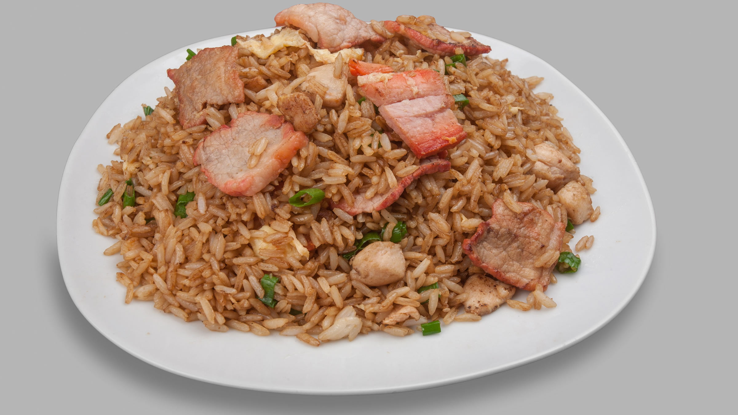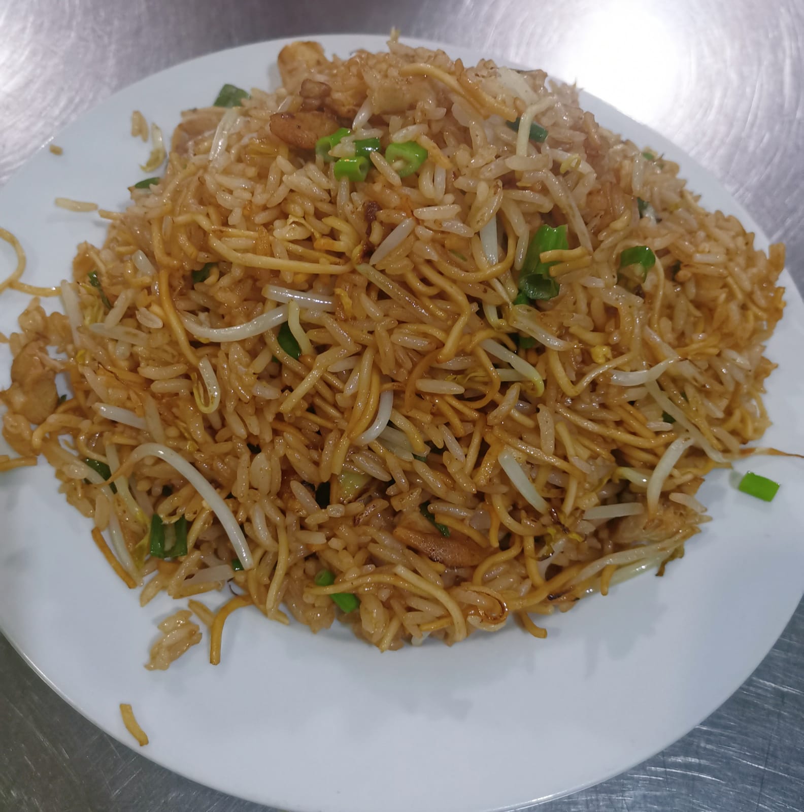 Arroz chaufa, chancho, pollo y tallarín saltado.