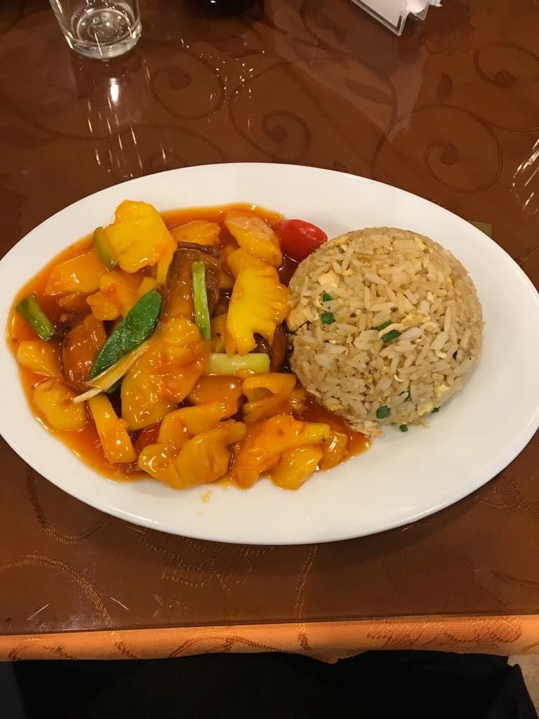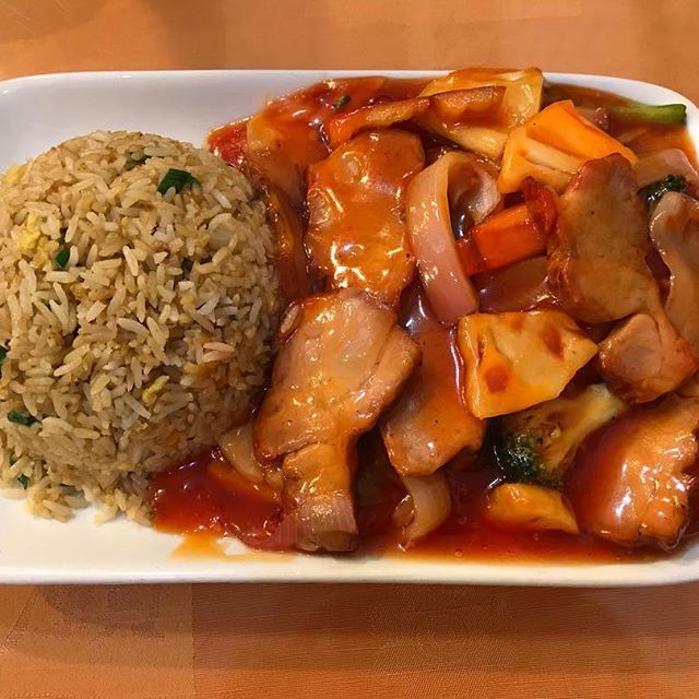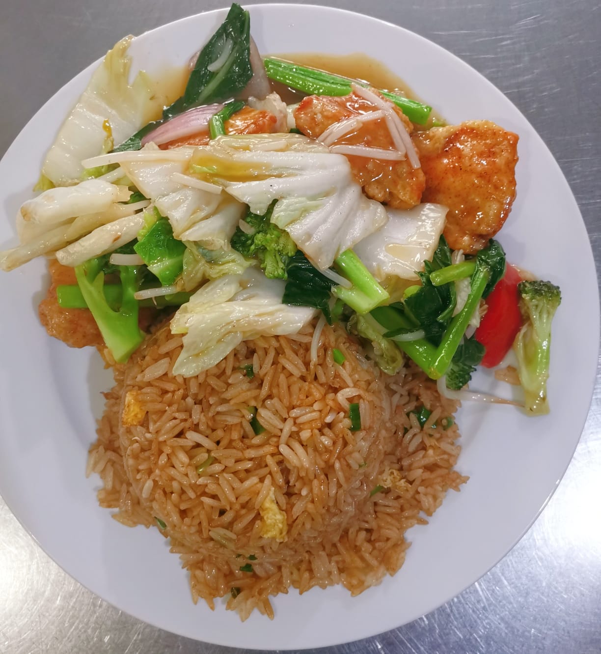 Pollo Tipakay con tamarrindo y Arroz Chaufa (dulce