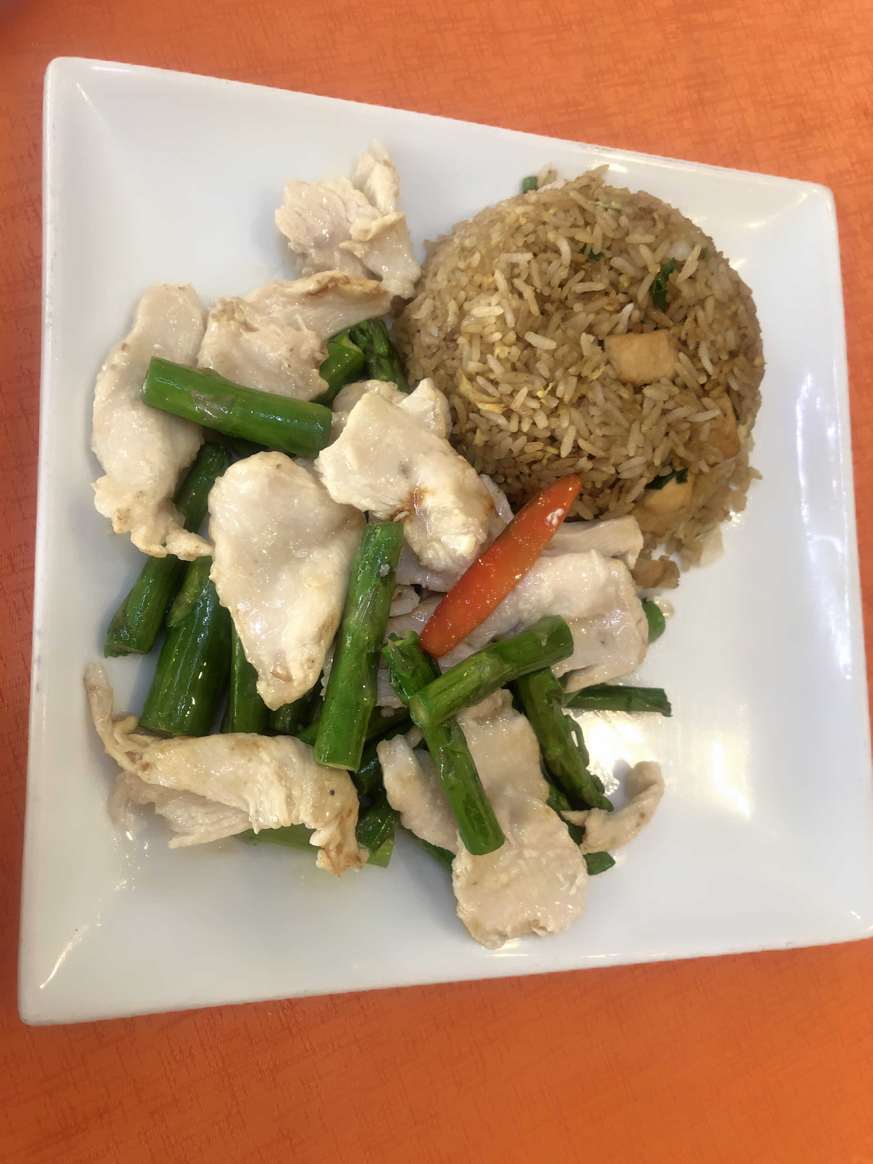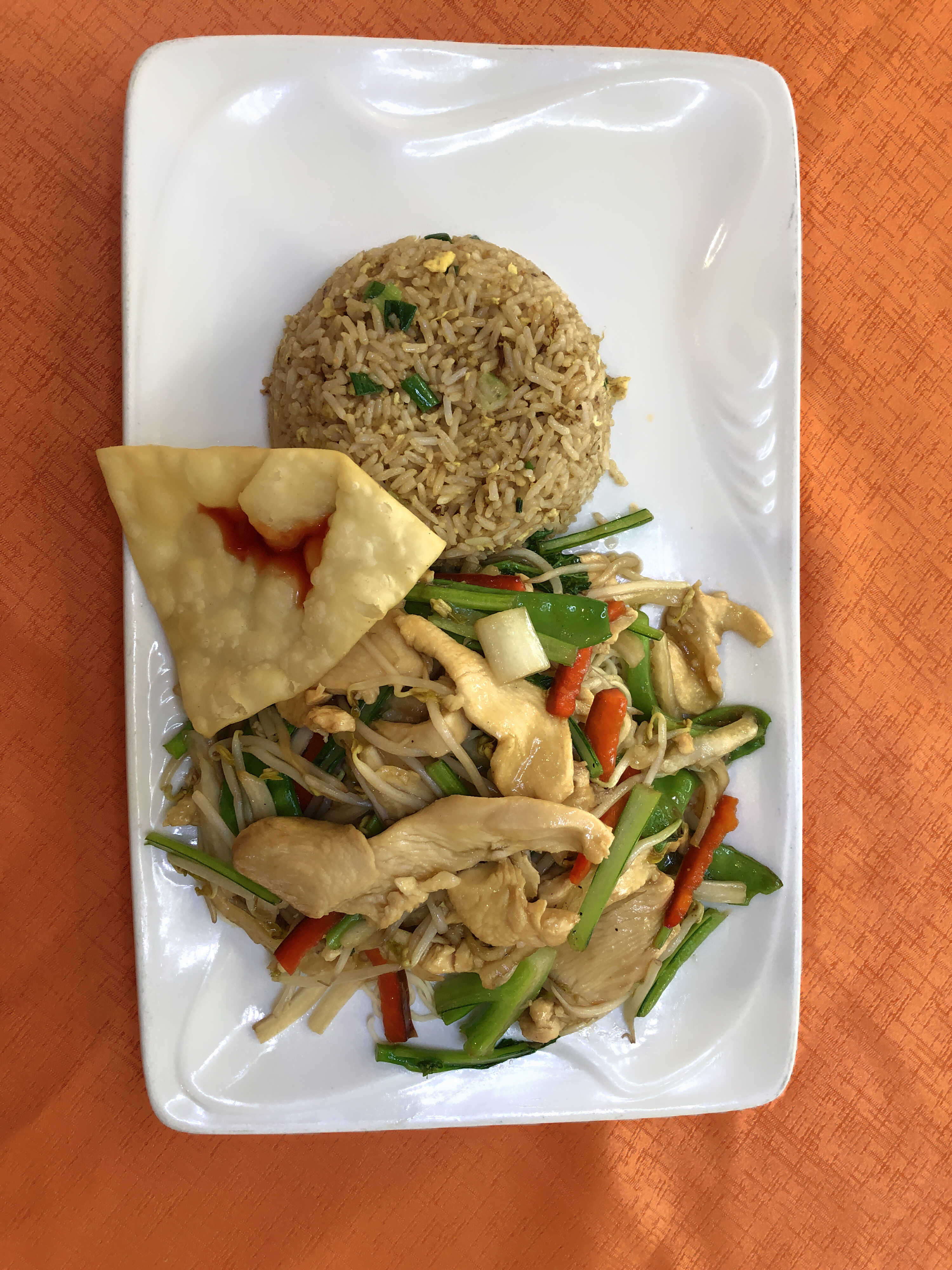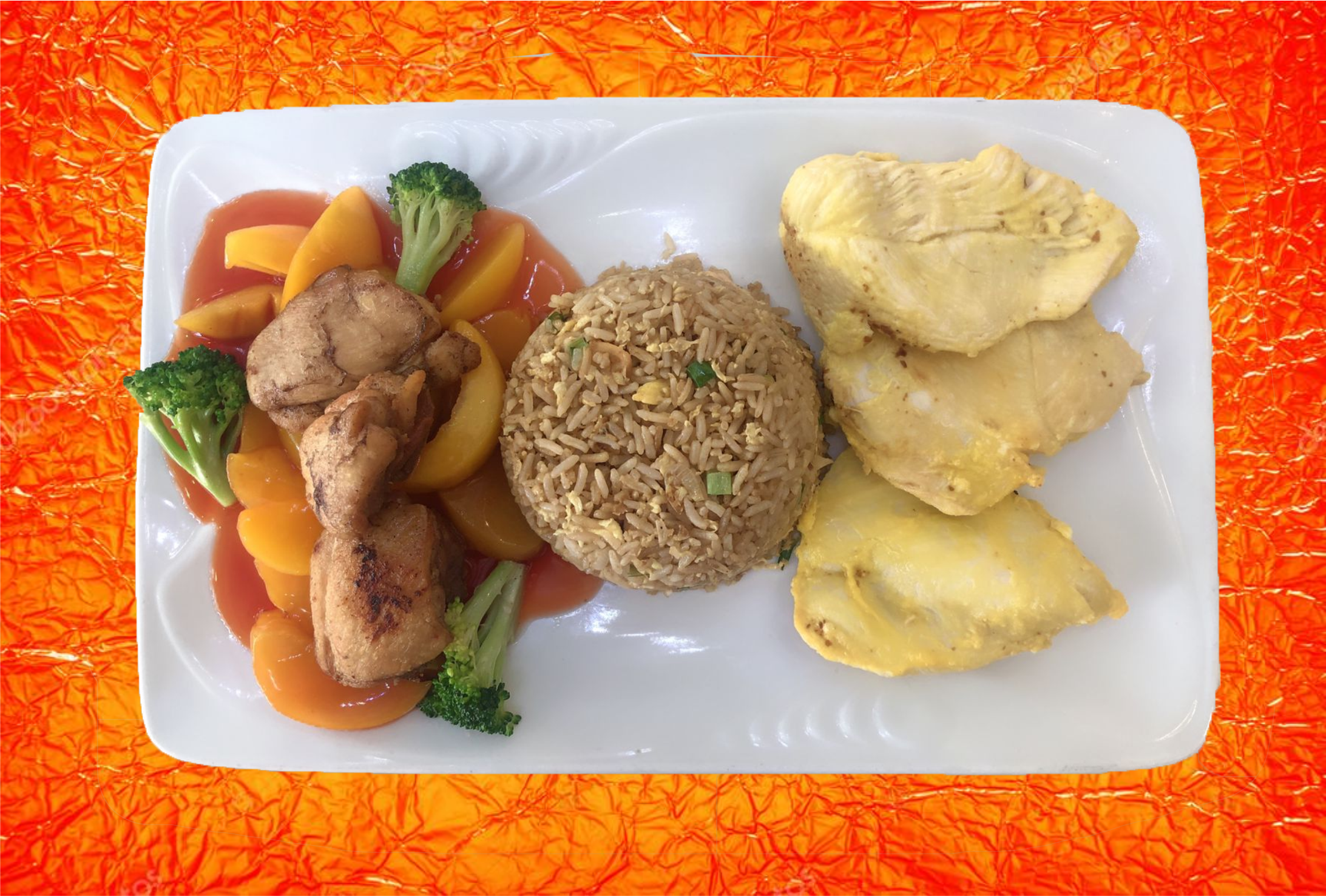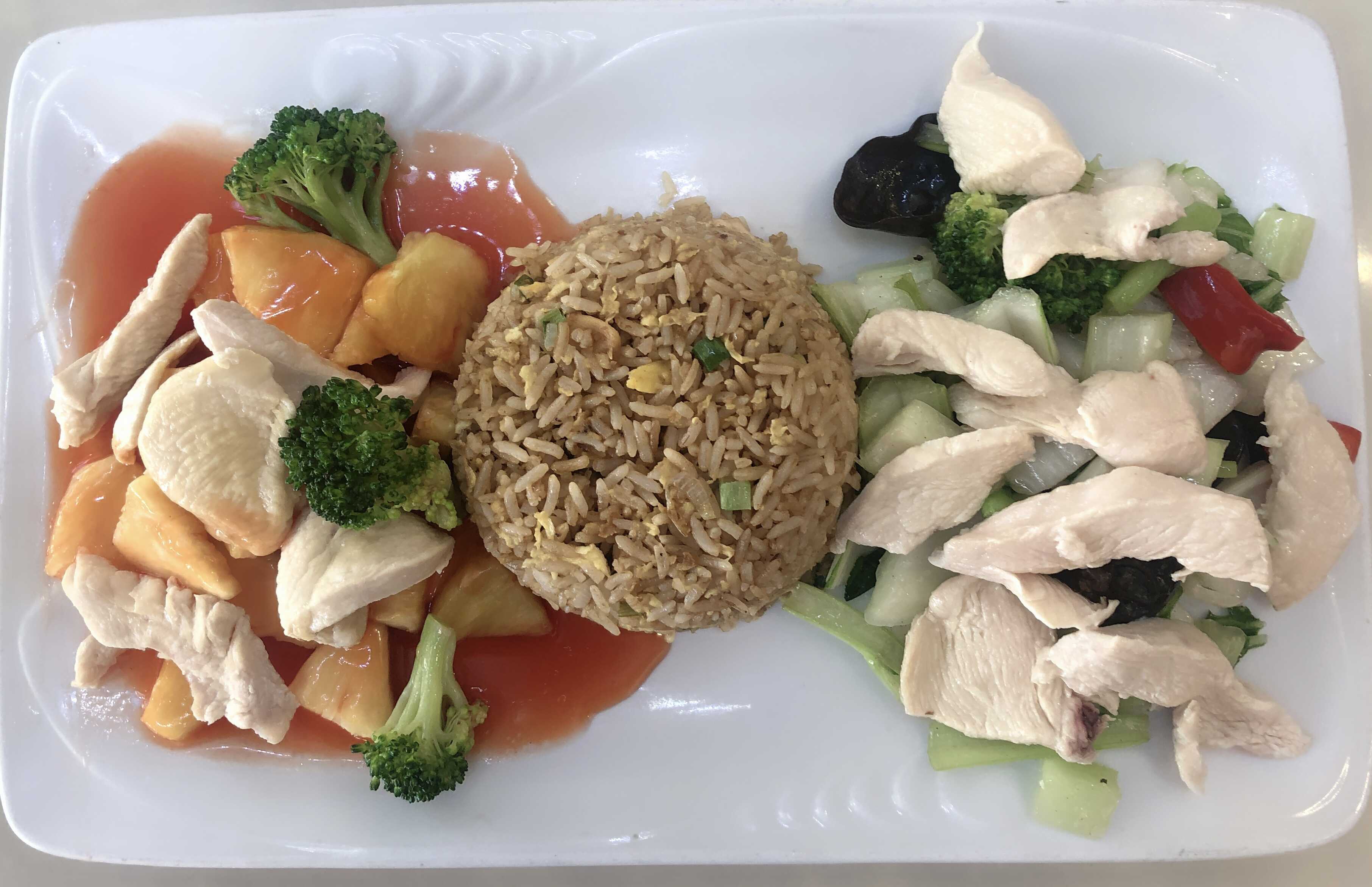 Pollo con Verduras más Pollo con Piña y Chaufa