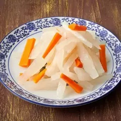 Una porción de nabo encurtido con zanahoria.