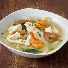 Sopa especial con pollo, chancho y langostinos.