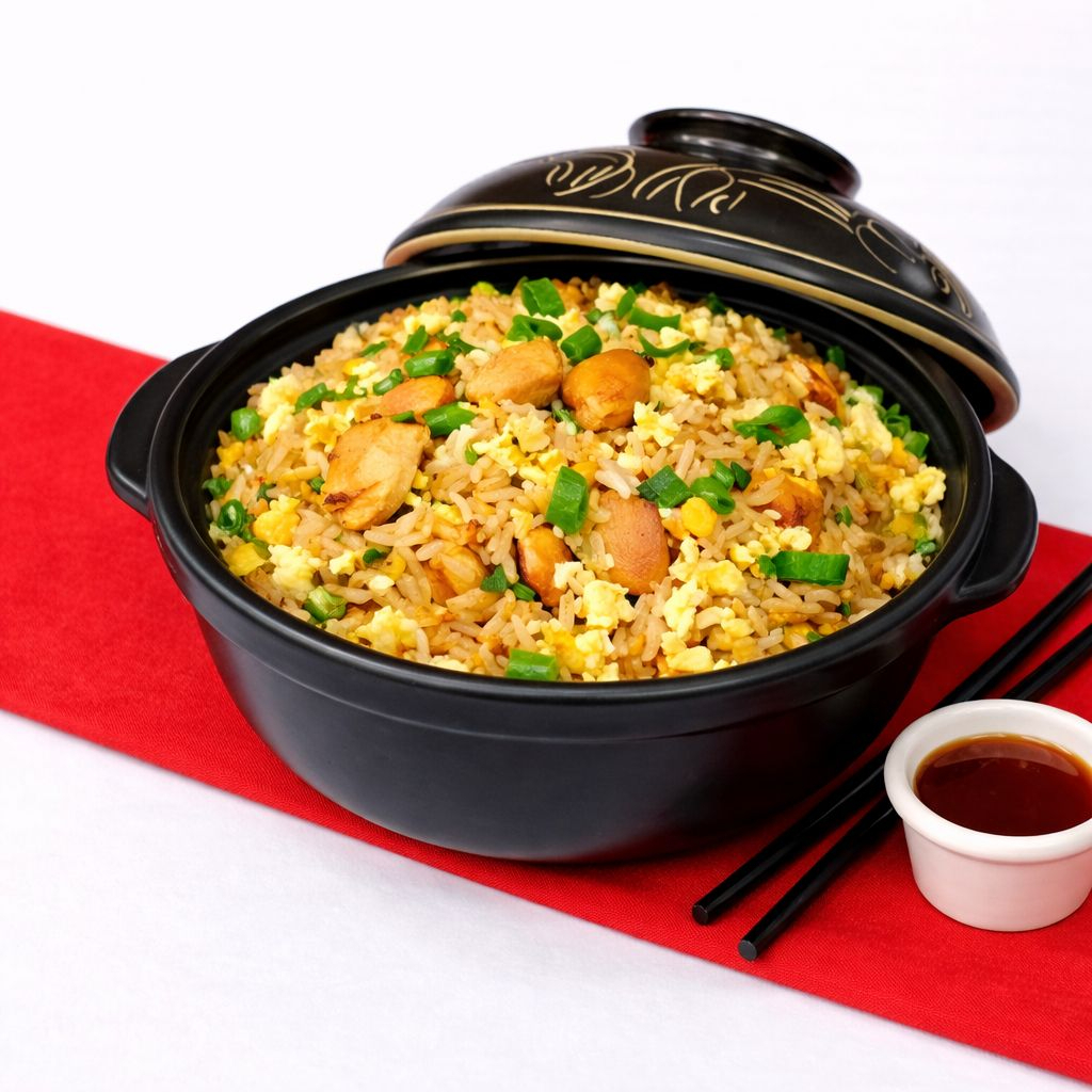 Chaufa tradicional de pollo salteado de la casa.
