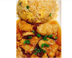 Pollo arrebozado con salsa agridulce - limón (limonkay)