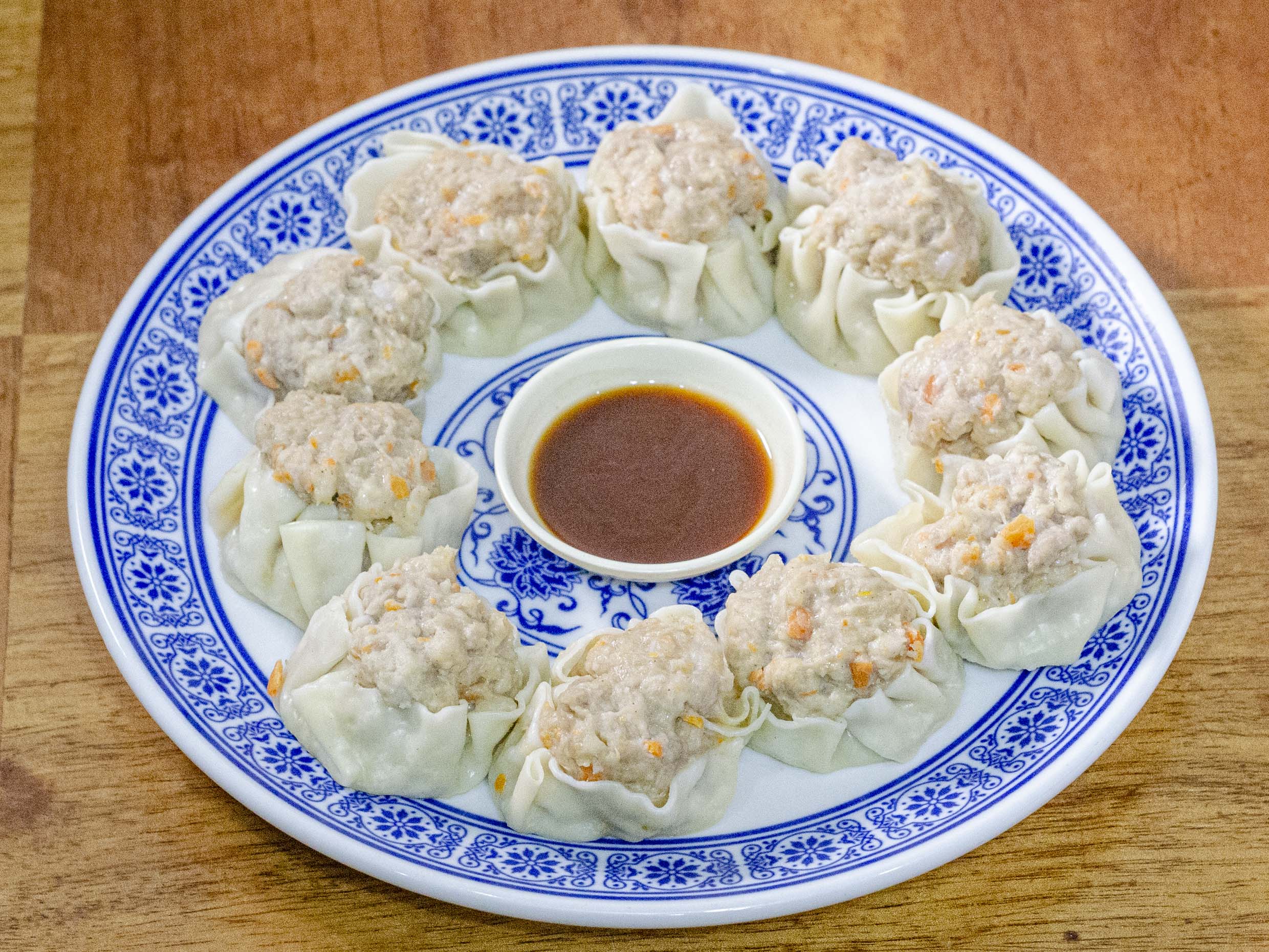 Bocadito al vapor relleno de chancho y pollo, acompañado de su salsa hoi si.