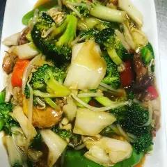 Arroz chaufa, frejlito, tallarín, pollo al sillao, chancho asado, langostino, huevo y cebolla china.