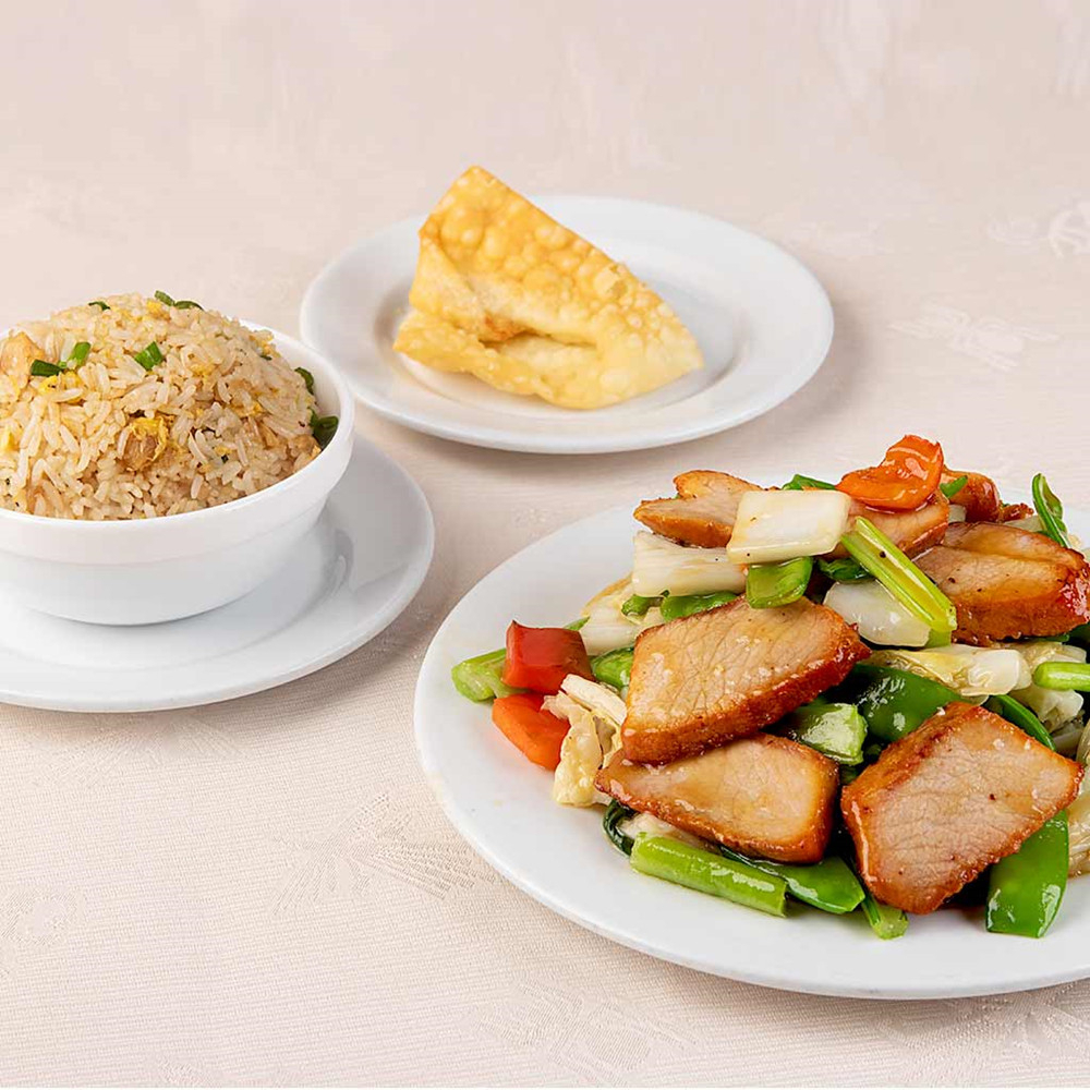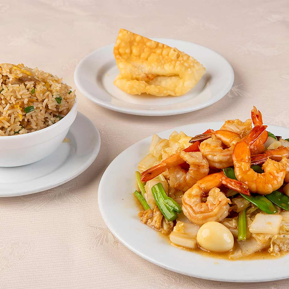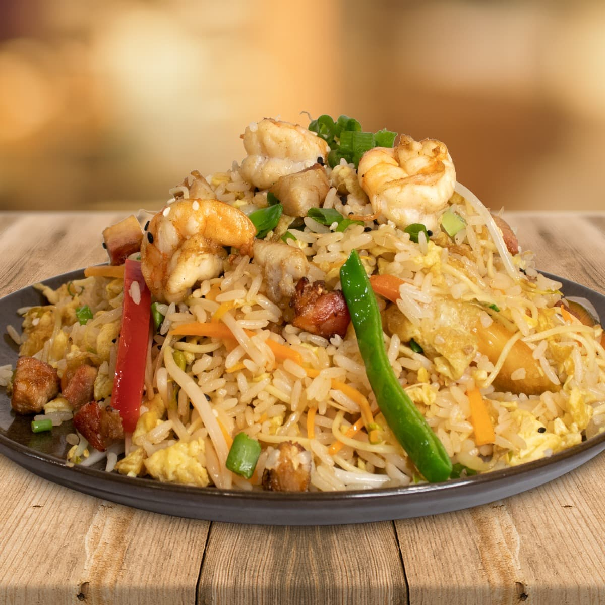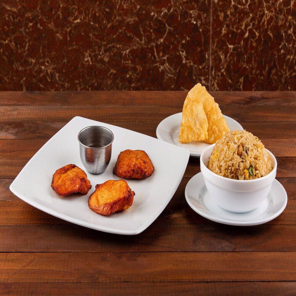 Deliciosa sopa tradicional con wantanes rellenos, pollo, chancho asado, huevo y verduras frescas. Servida con abundante caldo caliente y sabor casero.