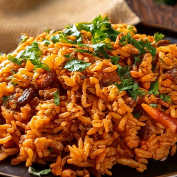 Arroz oriental flameado al wok con pollo, chancho asado, langostino, huevo y cebolla china.