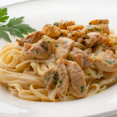 Descripción: porción de arroz flameado al wok con pollo, huevo y cebolla china con porción de tallarin, verduras flameadas con pollo en láminas.