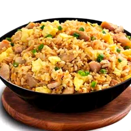 arroz, sillao, cebolla china, huevo y pollo (450gr aproximadamente).