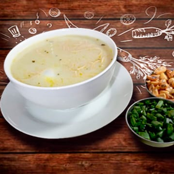 caldo de gallina con presa chica y con huevo , cancha aji y limon