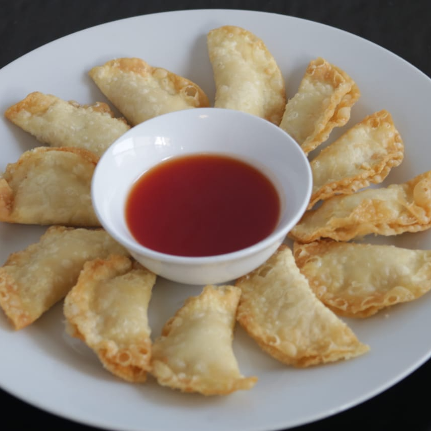Wantanes fritos, bañados en salsa especial de tamarindo chancho, pollo, langostinos, piña y verduras