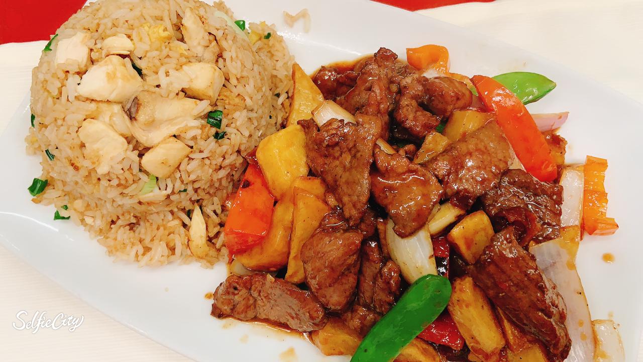 Lomo Saltado con Carne y Chaufa