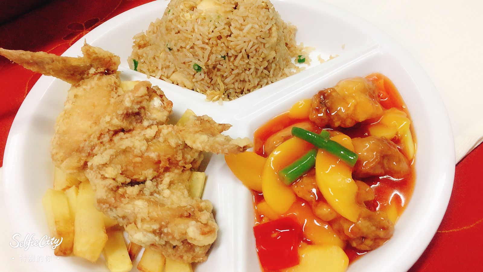 Alas Fritas, Pollo Durazno y Chaufa