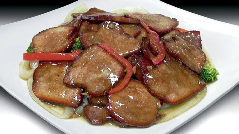 Chancho al ajo acompañado de arroz chaufa