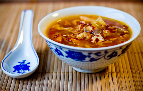 Sopa picante con verduras.