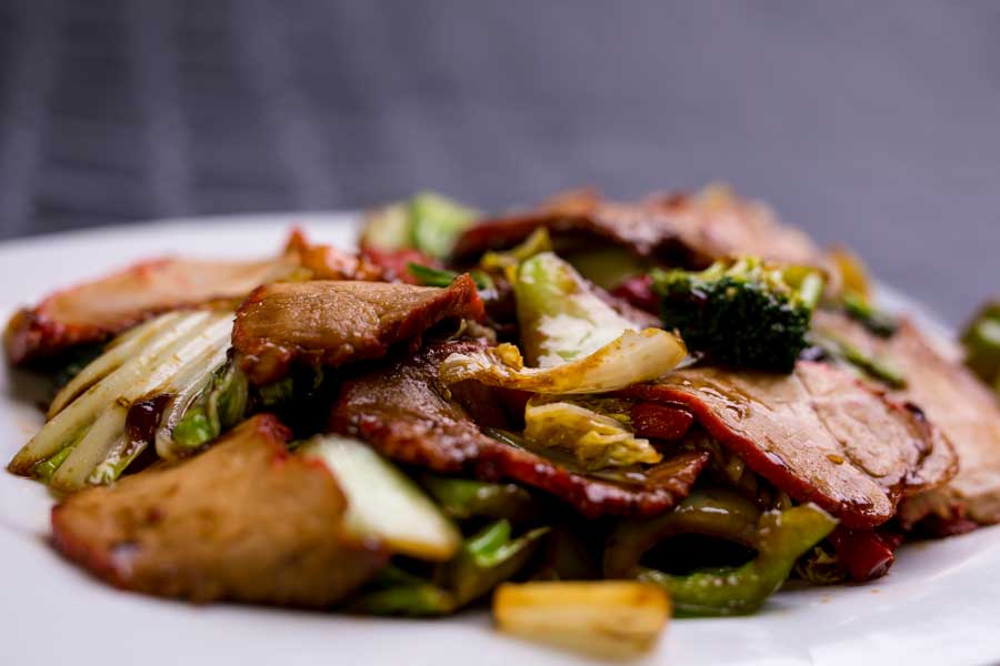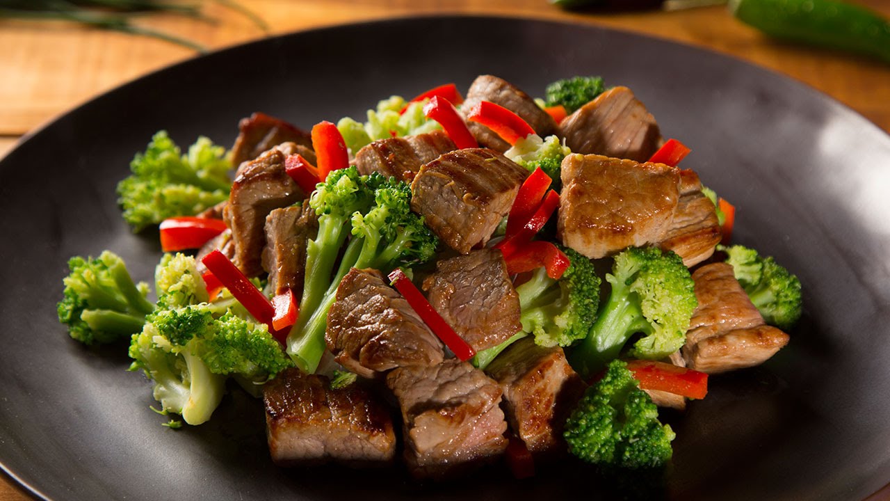 Carne de res salteada con verduras.