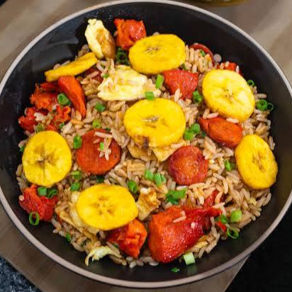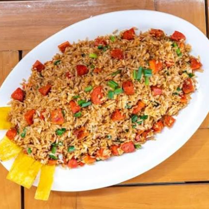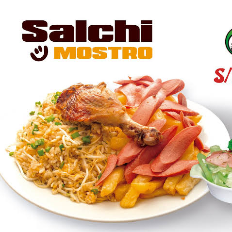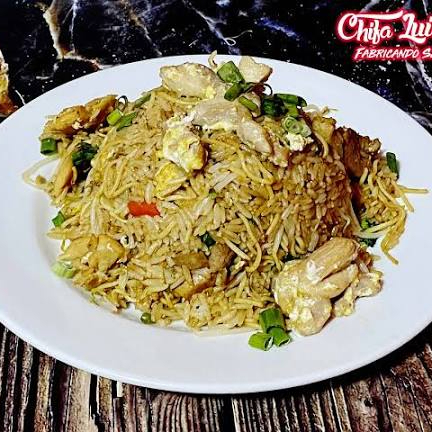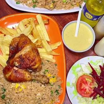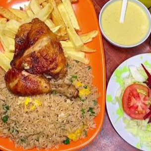 1 Pollo+ papas + ensalada+ cremas+ chaufa susana con chorizo y cesina