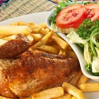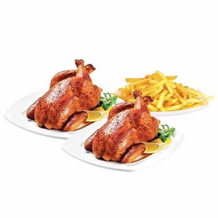 1 pollo + papas + ensalada + cremas + aeropuerto