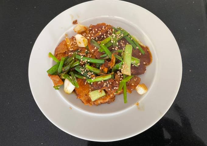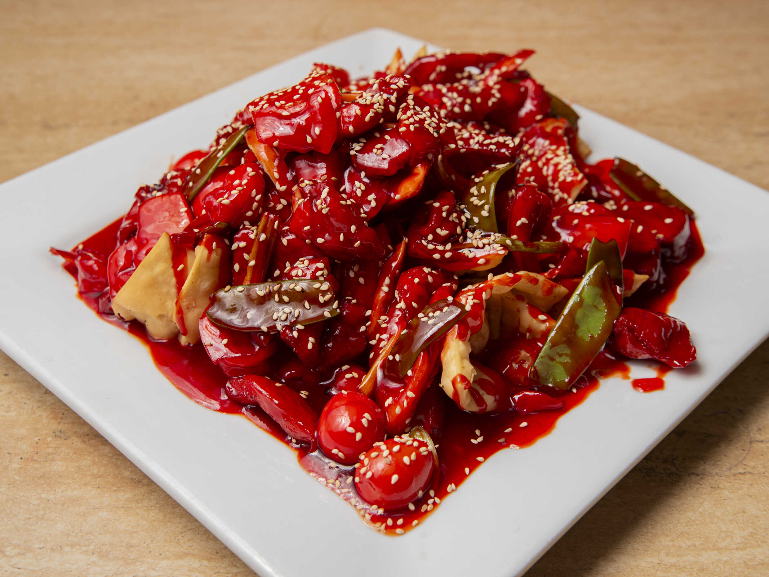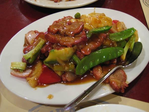 Chancho, verduras salteadas y especias orientales.