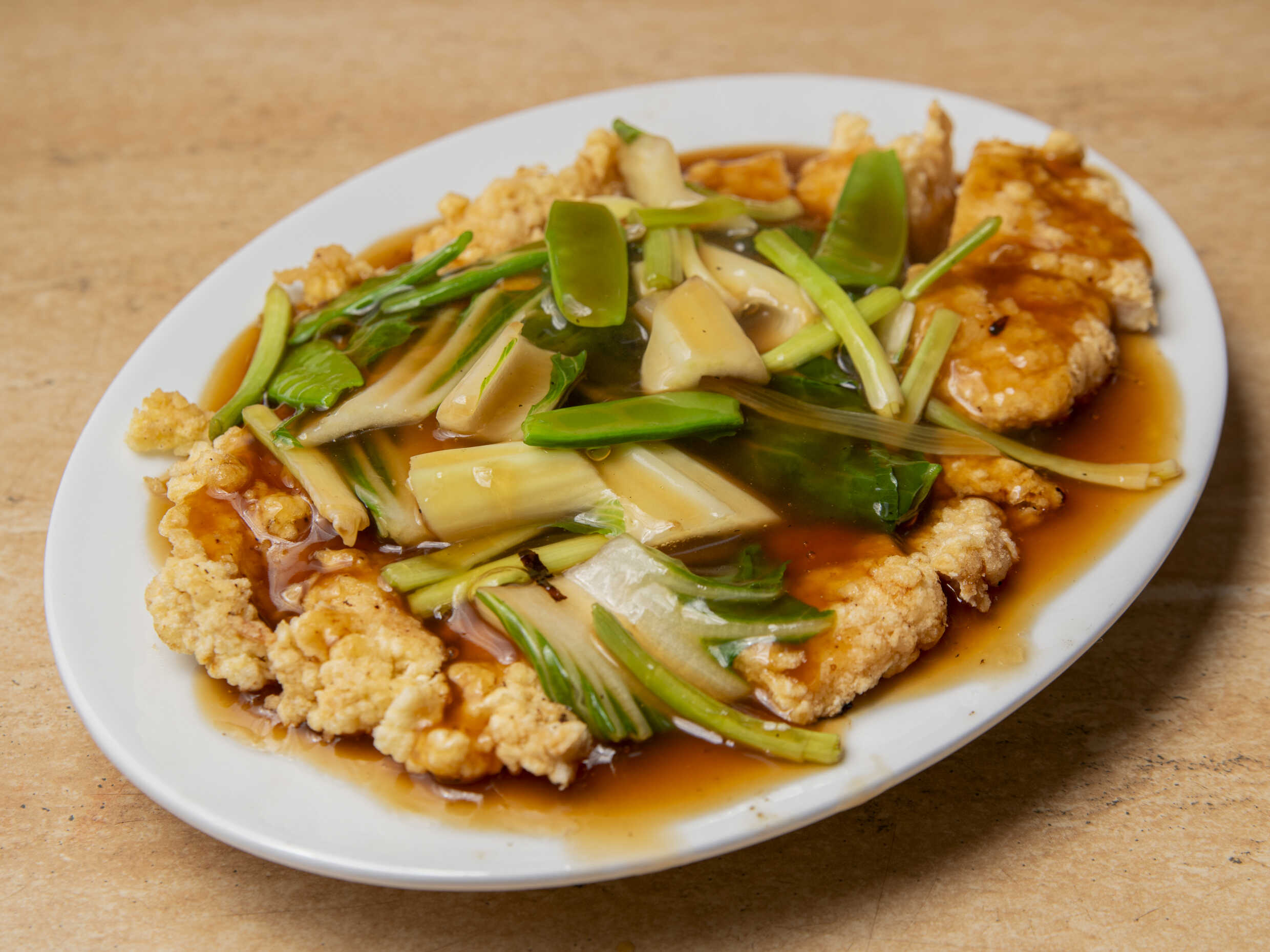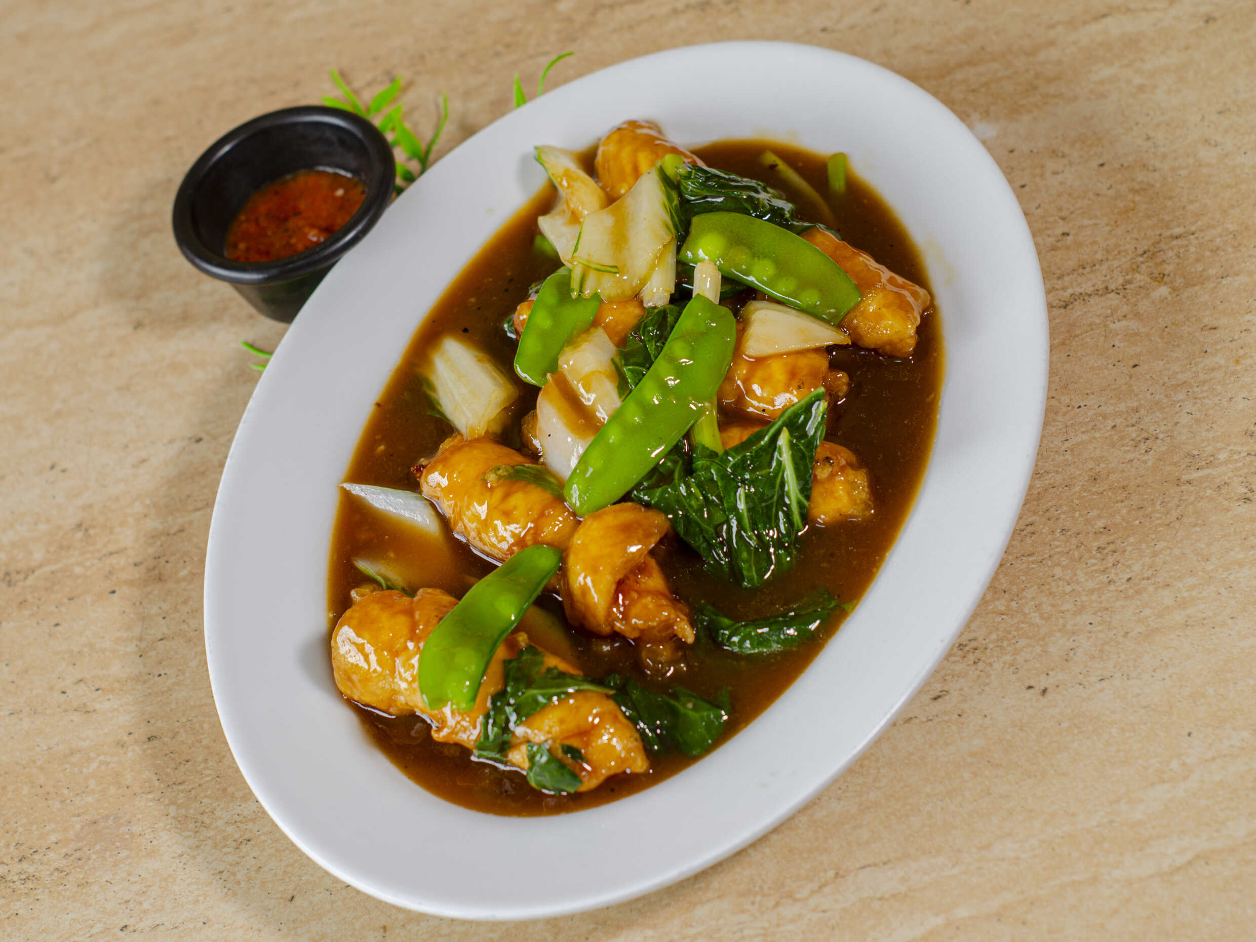Pollo deshuesado en salsa tausí.