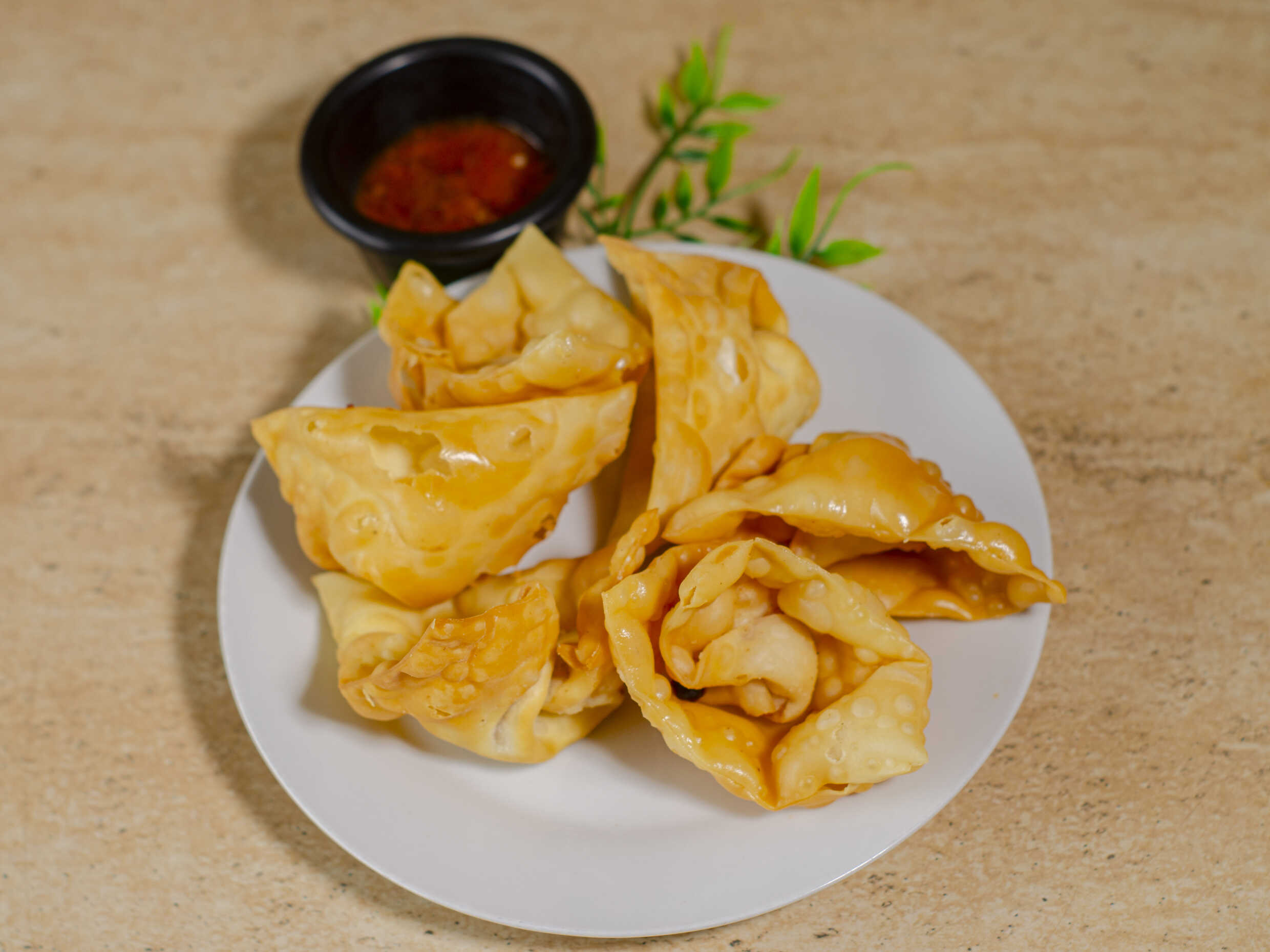 12 Unidades de wantan frito relleno de chancho con tamarindo.