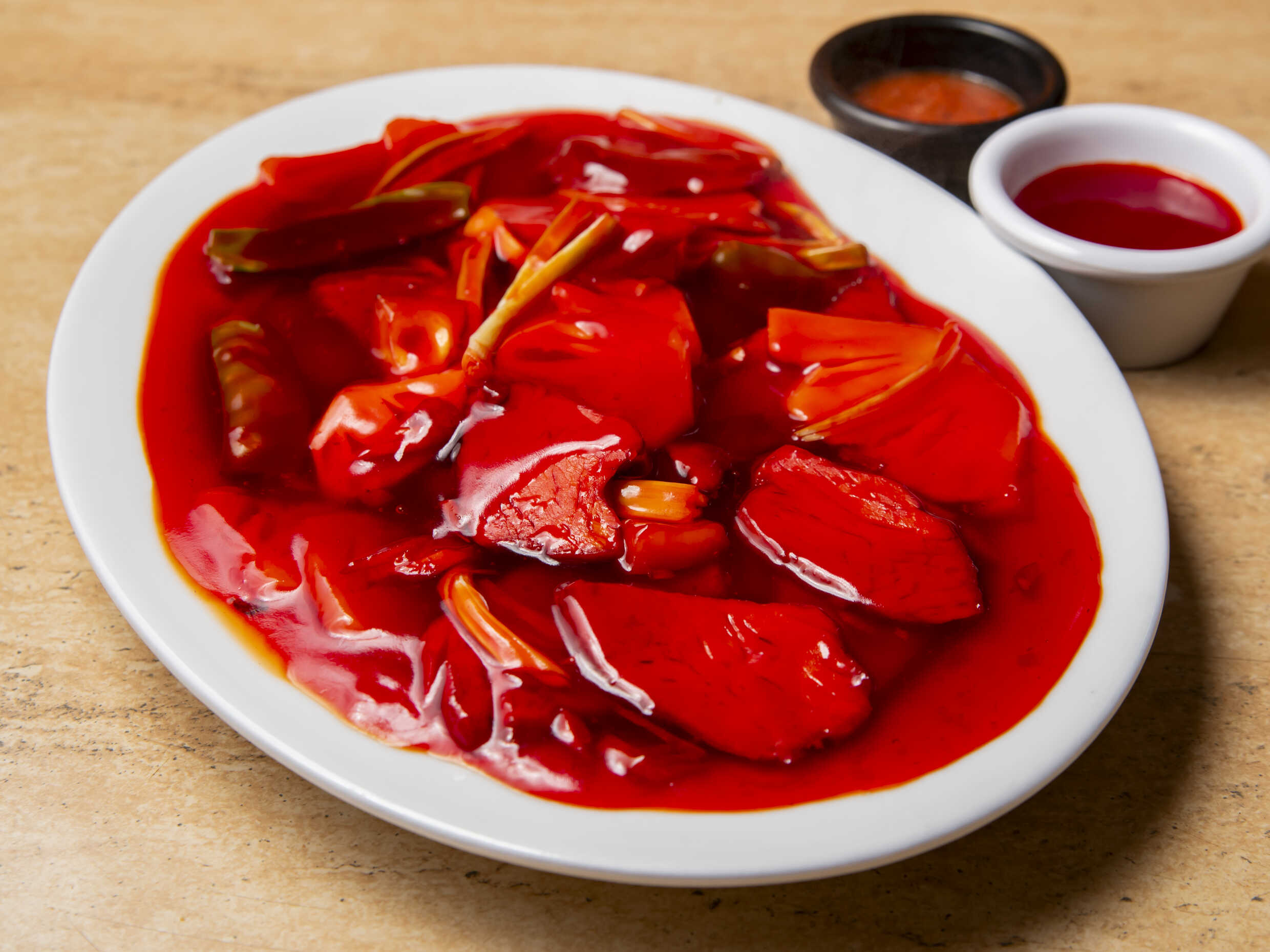 Pollo deshuesado en salsa de tamarindo.