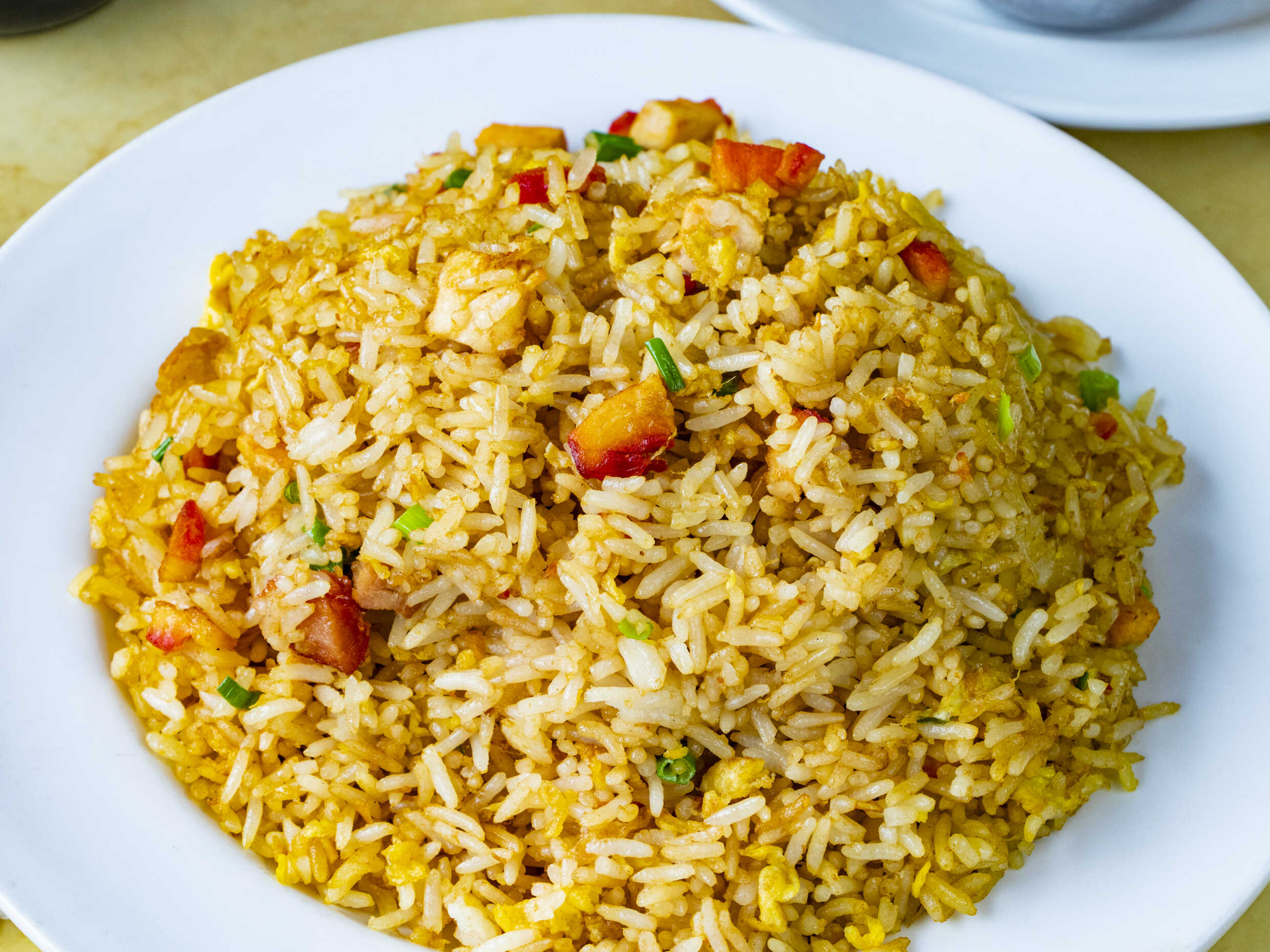 Arroz revuelto con tallarín, frijolito chino, pollo, langostino y chancho.
