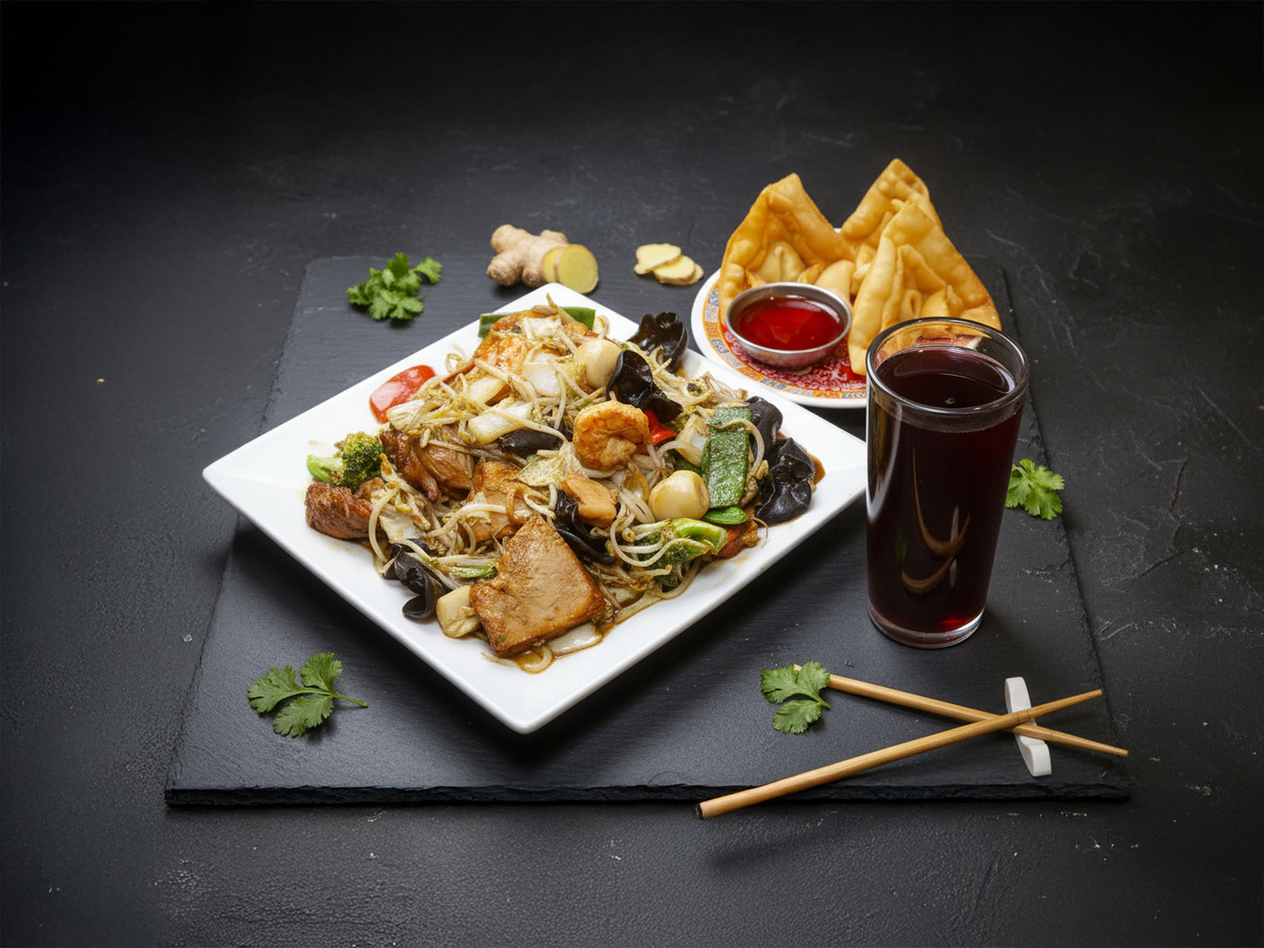 4Wantanes + Chaufa de Pollo + Chijaukai con Chaufa