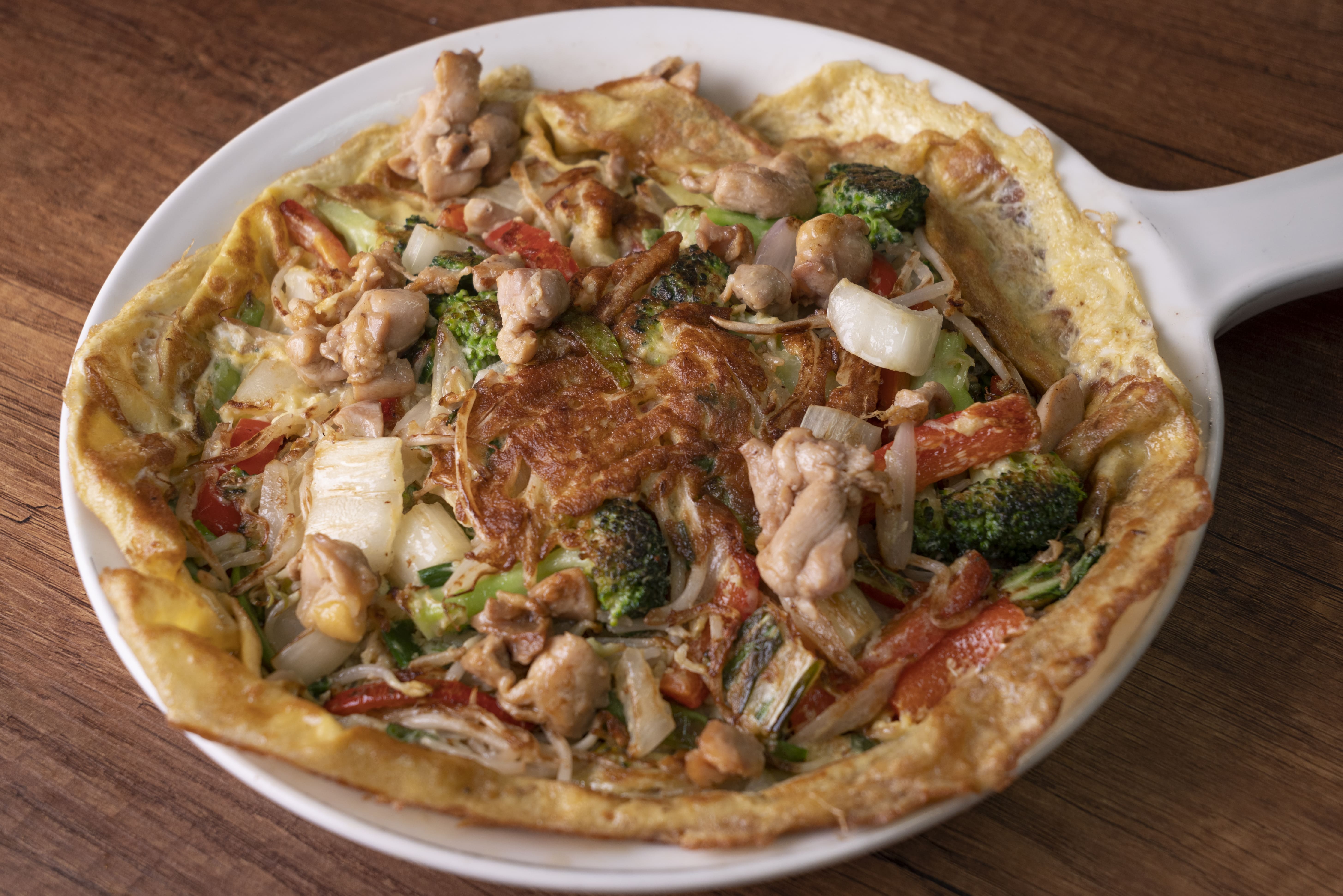Tortilla de huevo con pollo.