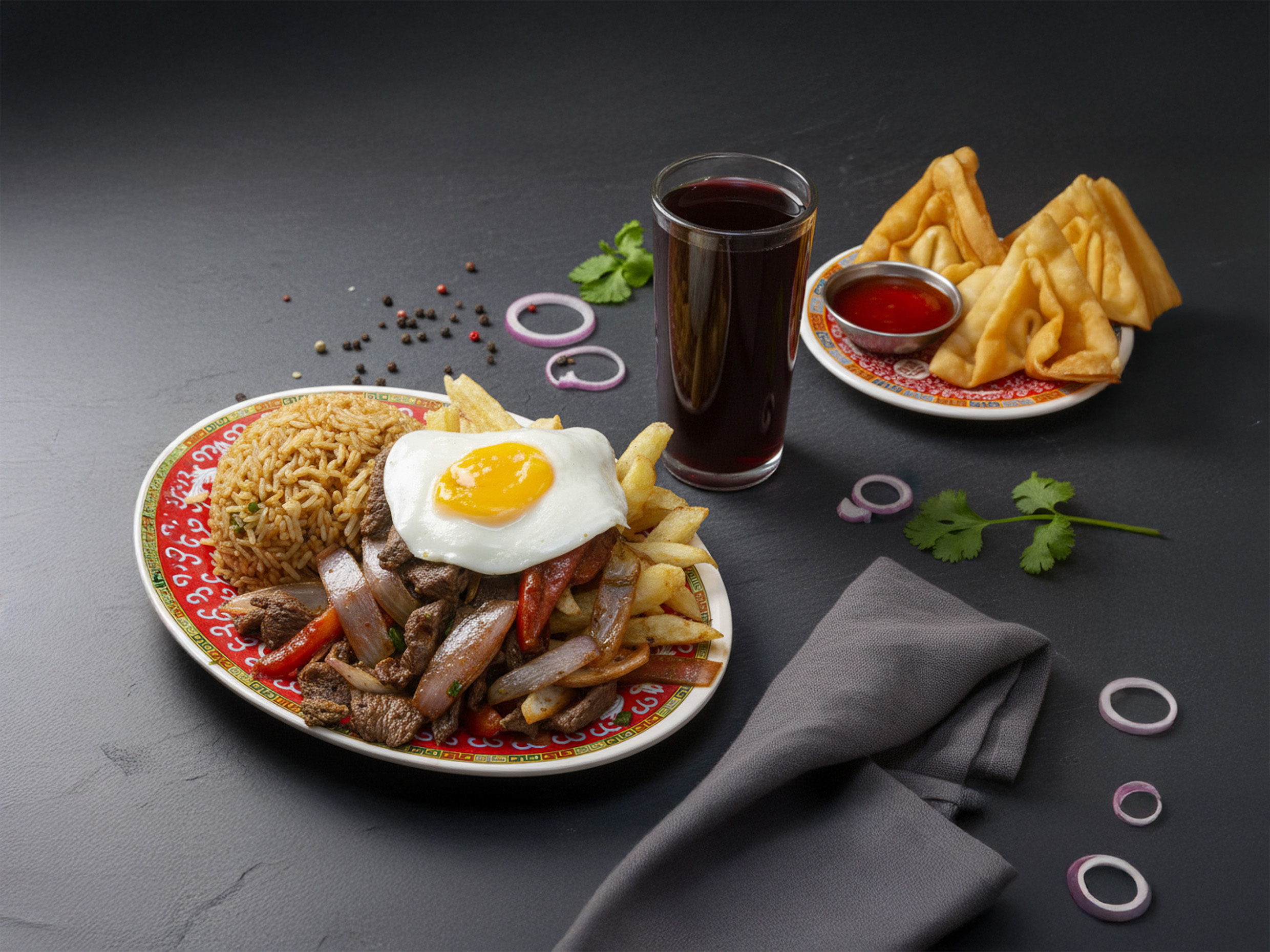 Lomo Montado + Wantan Frito (3 Unid) + Chicha