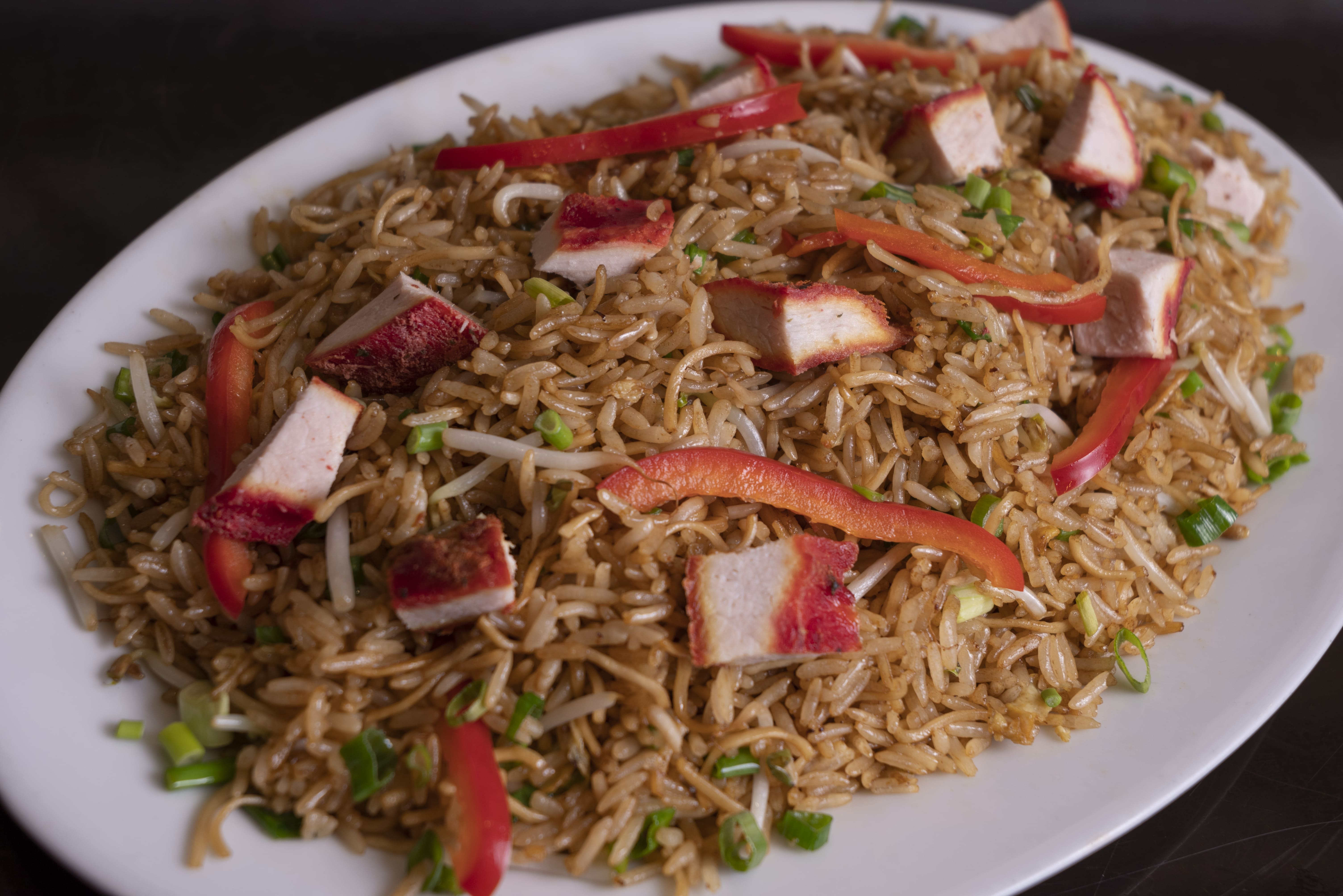 Arroz frito con carne de cerdo.
