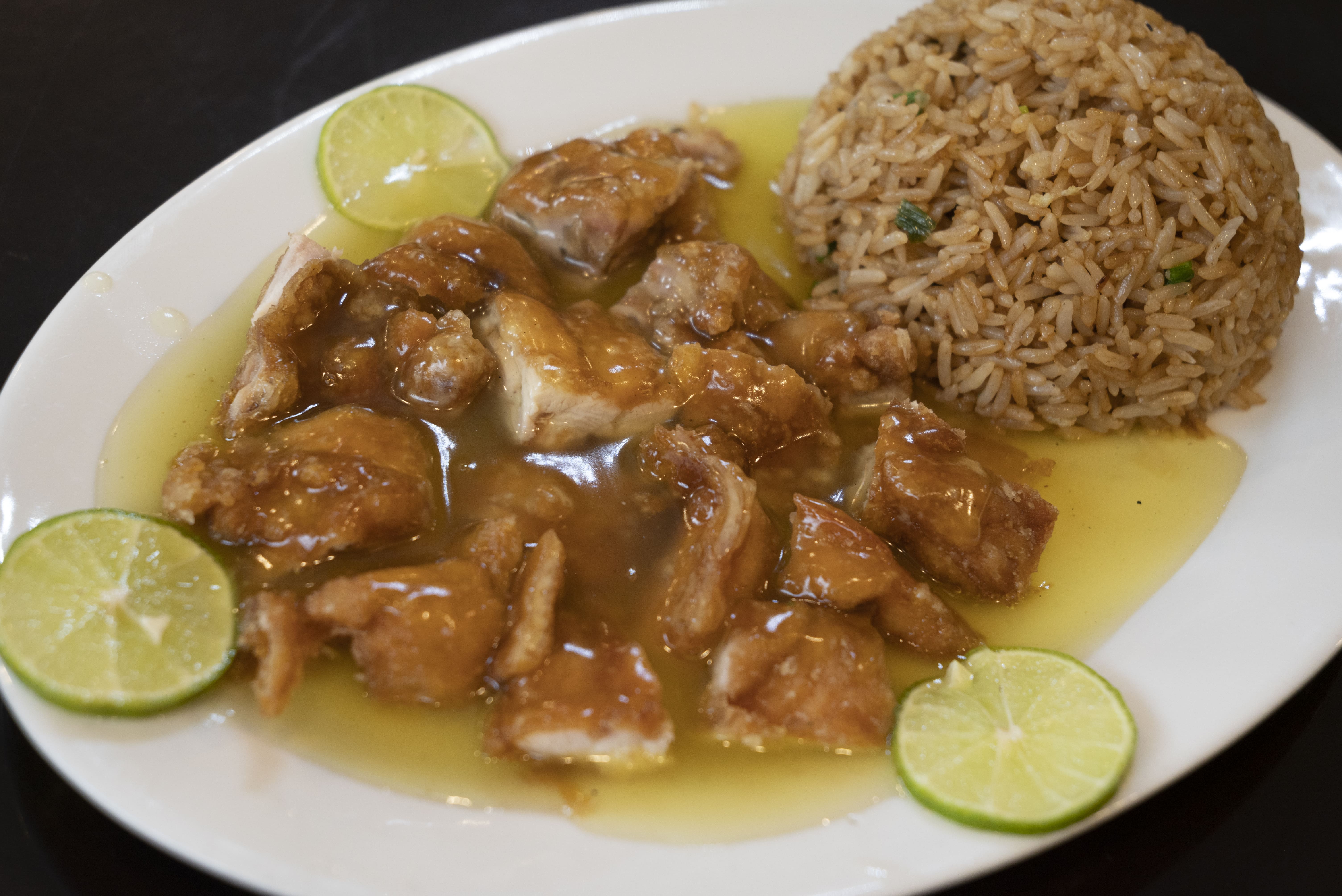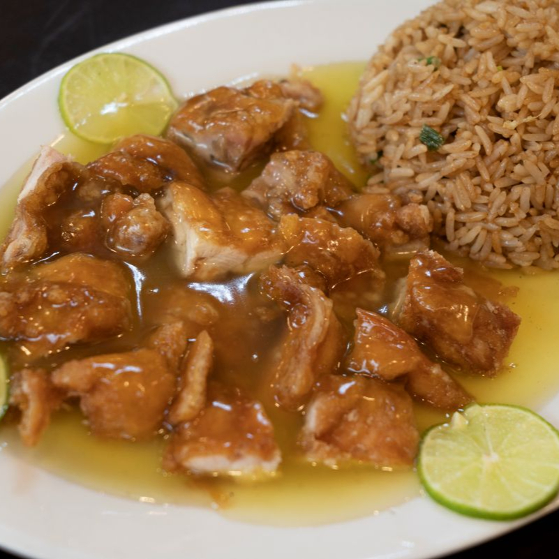 Pollo con salsa de limón agridulce.