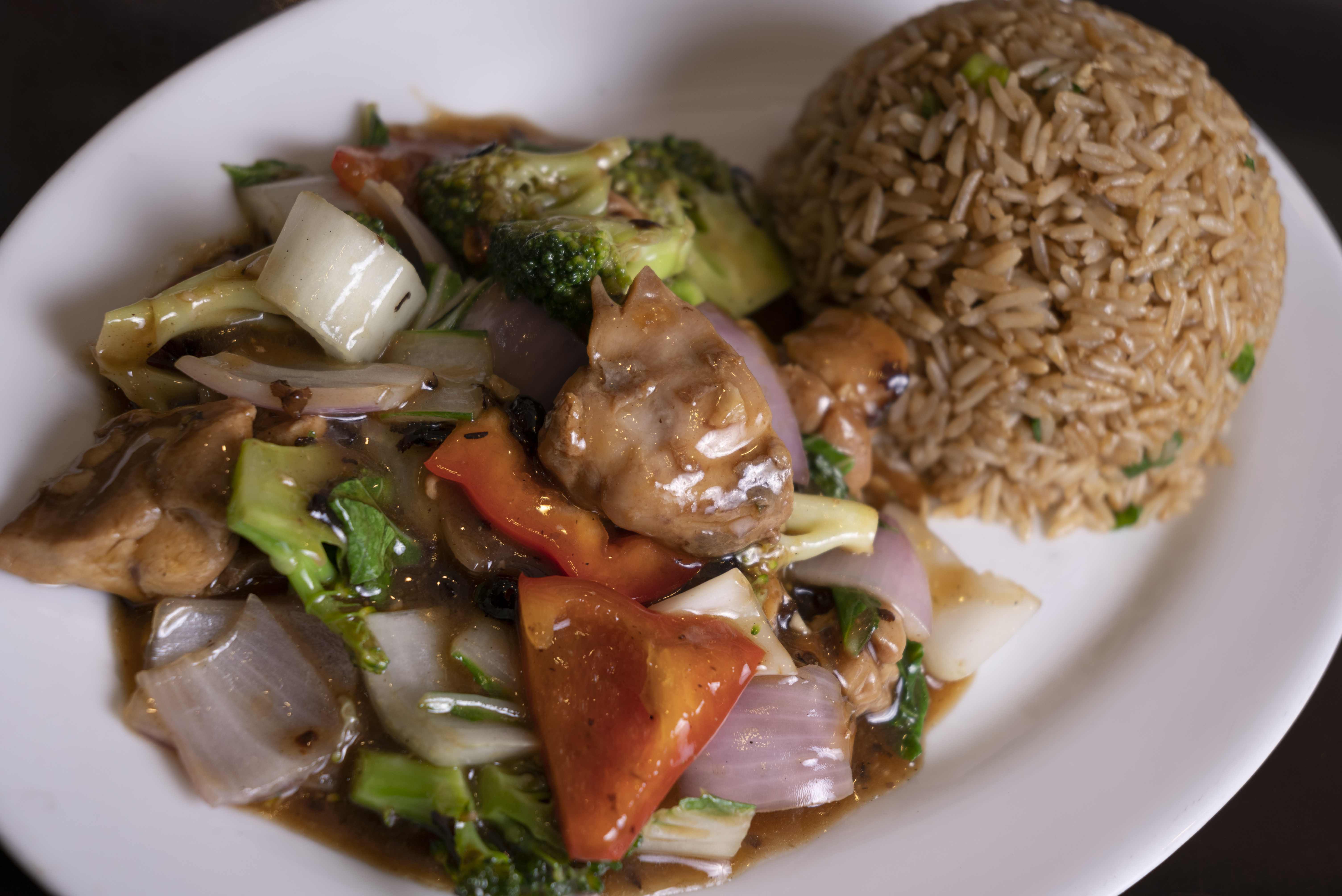 Arroz frito con carne de cerdo.