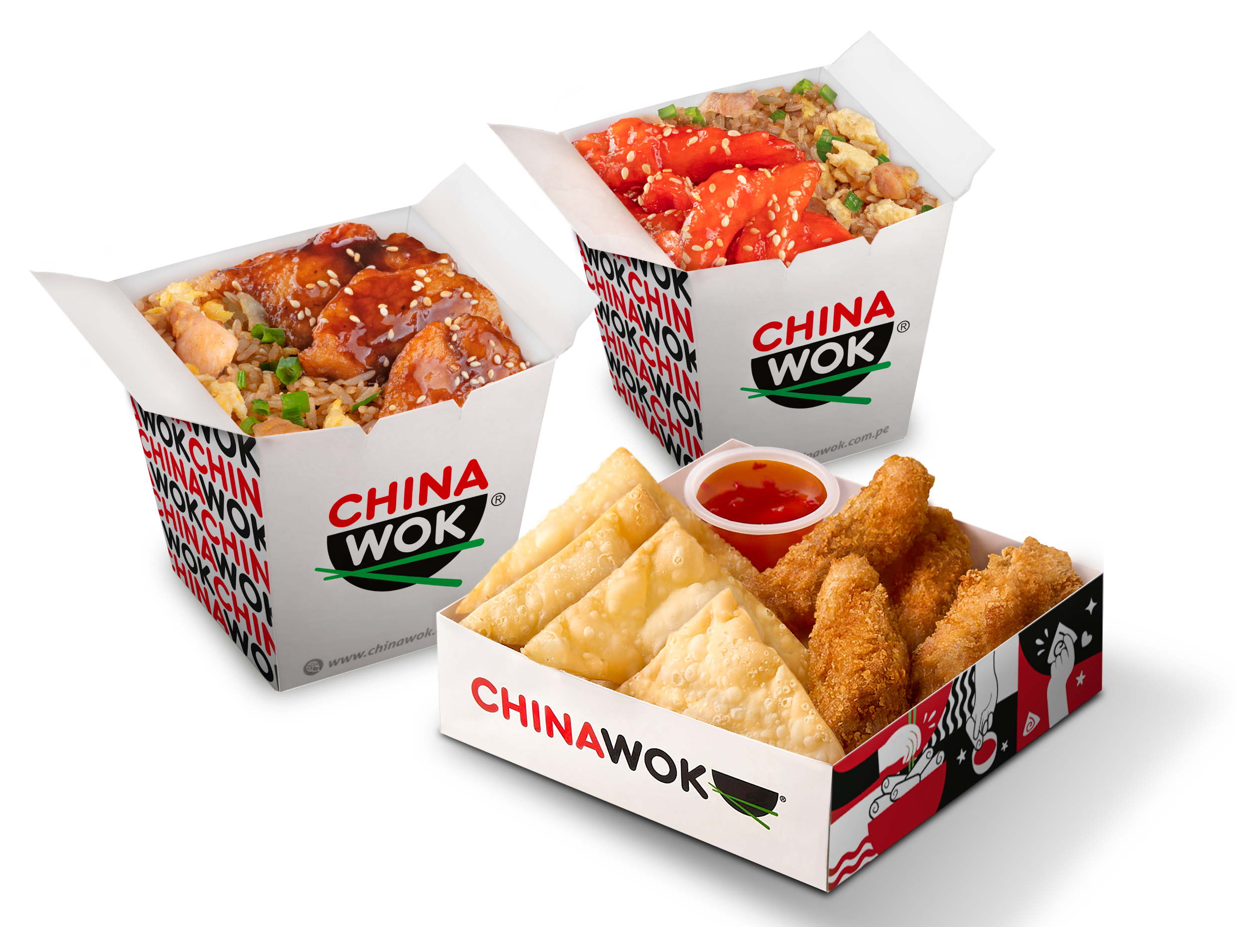 2 Arroz Chaufa de Pollo + 1 Potaje Familiar a Elección + 1 Wok Box Familiar (Salsa Honey Picante o Dulce Oriental 2oz + 12 Wantan Chips + 10 Pollo al Panko)