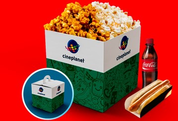 1 Caja de canchita grande dulce + 1 gaseosa en botella + nachos con queso cheddar.