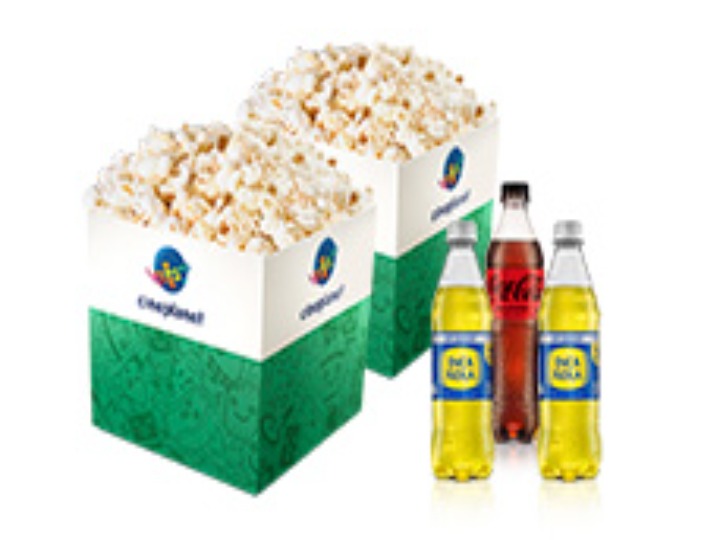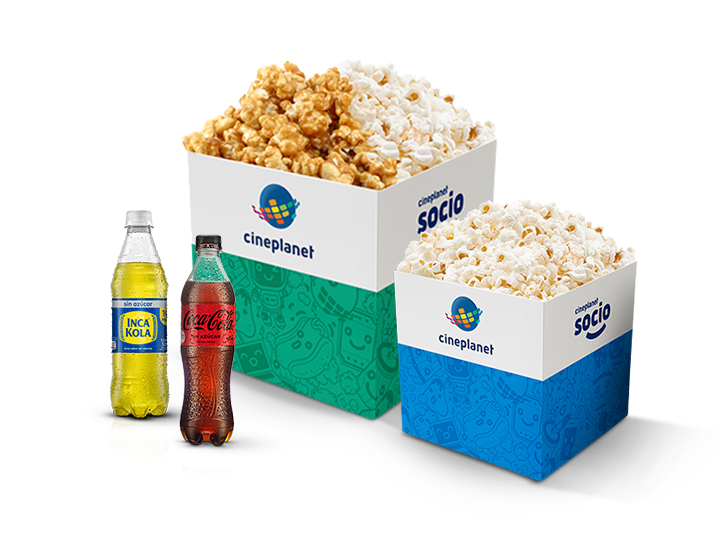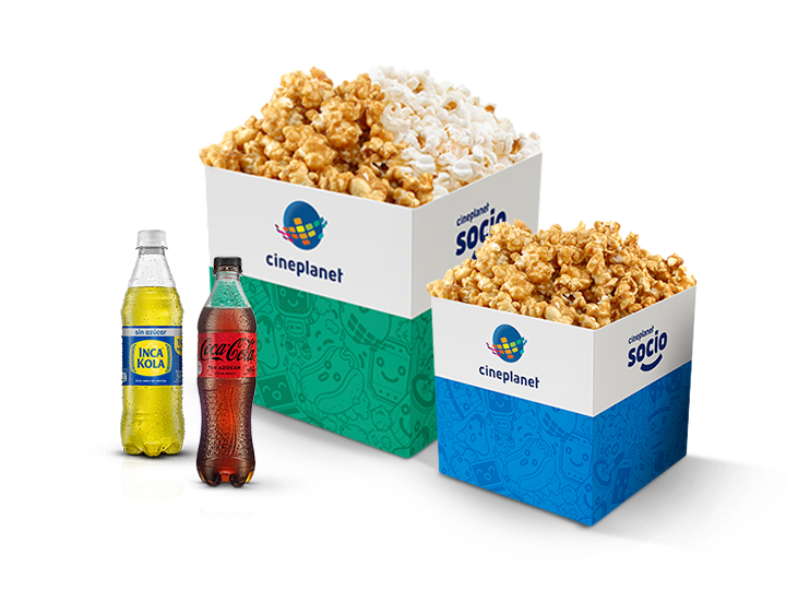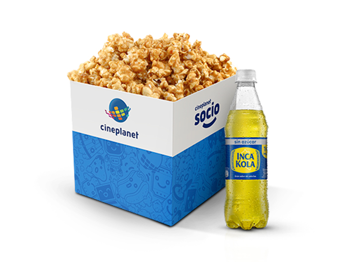 1 Caja de canchita grande dulce + 1 gaseosa en botella + 1 hot dog.