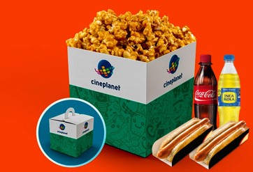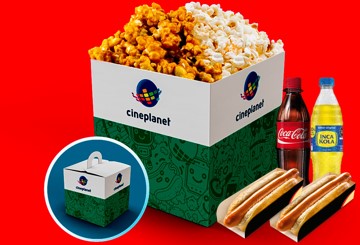 1 Caja de canchita grande mix + 2 gaseosas en botella + 2 hot dogs.