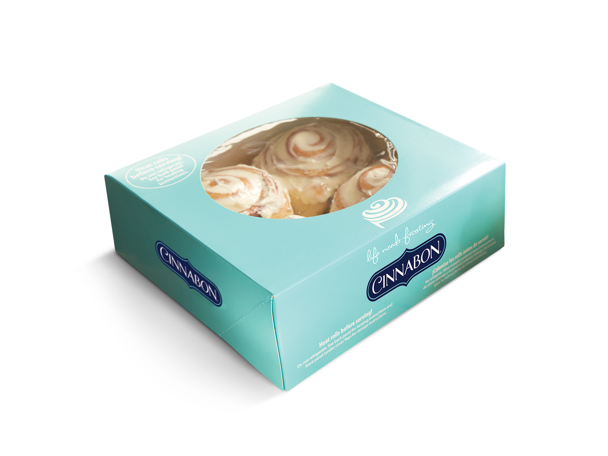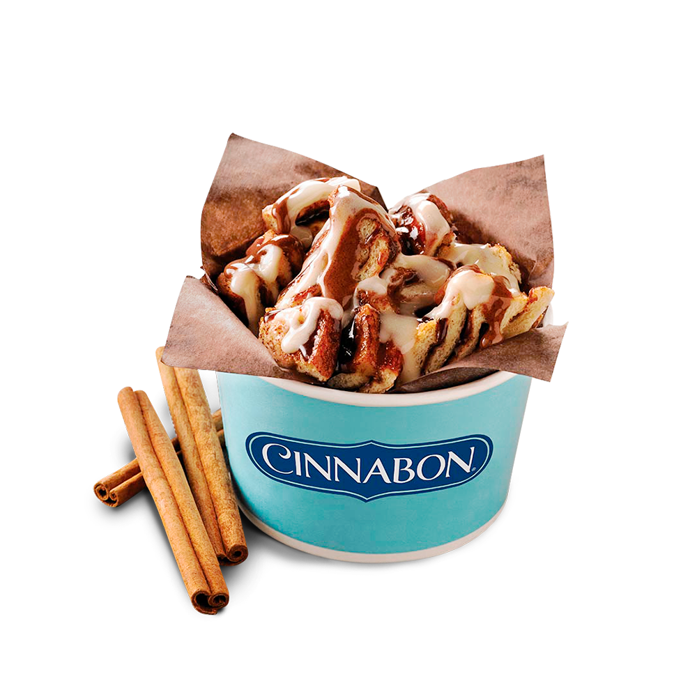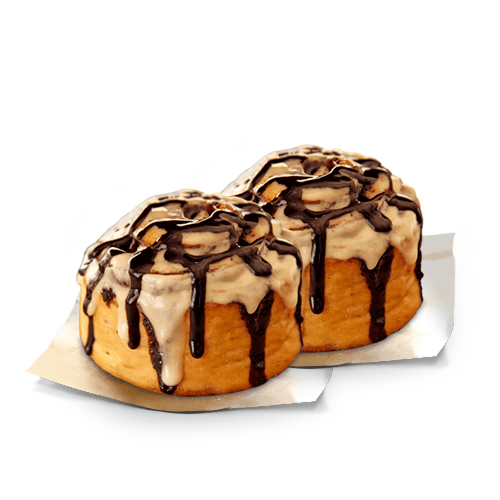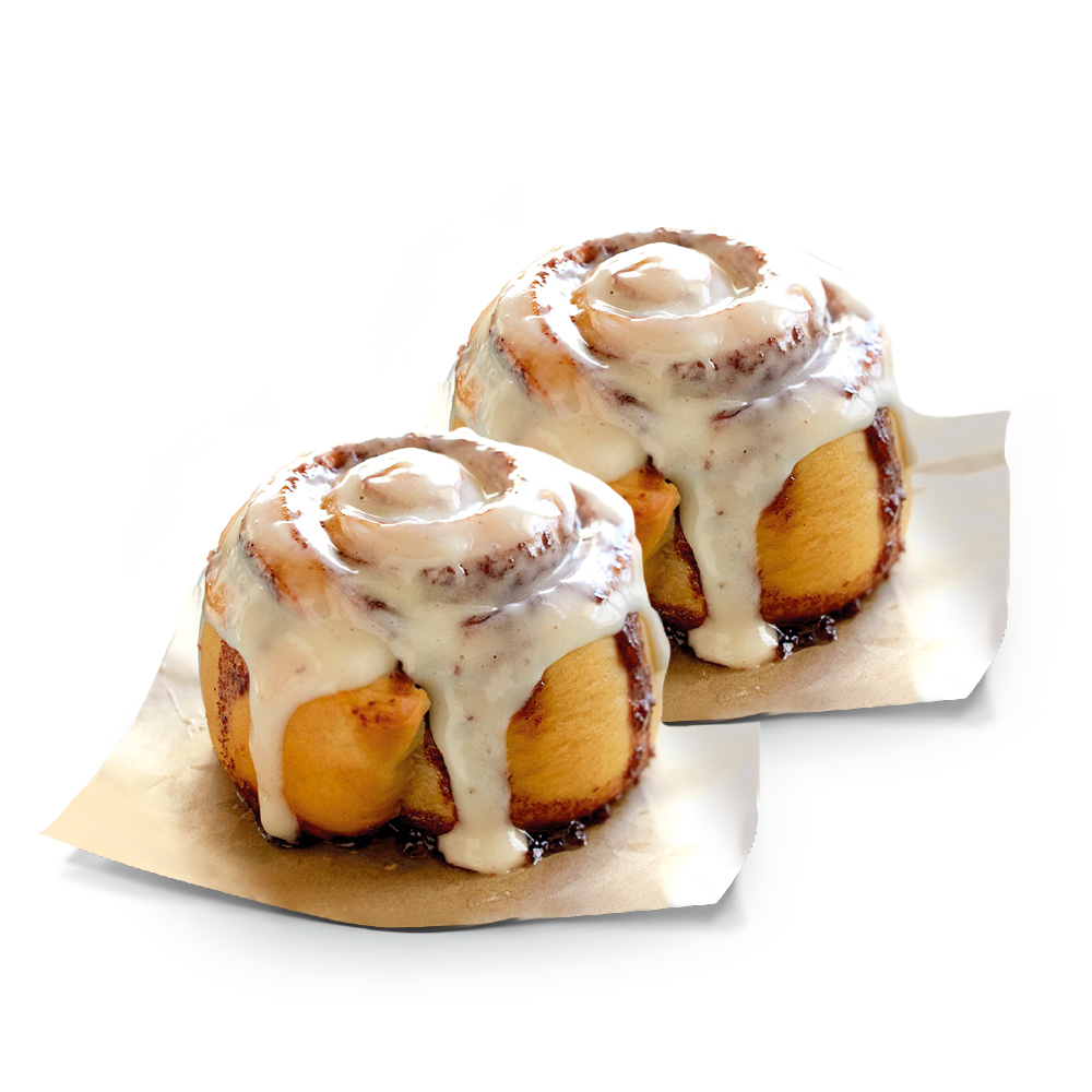 Rollos de canela en trozos cubierto con nuestro glaseado frosting.
