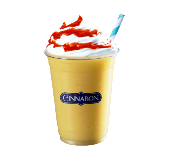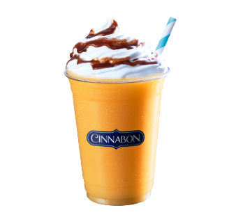 Bebida frappé sabor mango, naranja y maracuyá y crema chantilly.