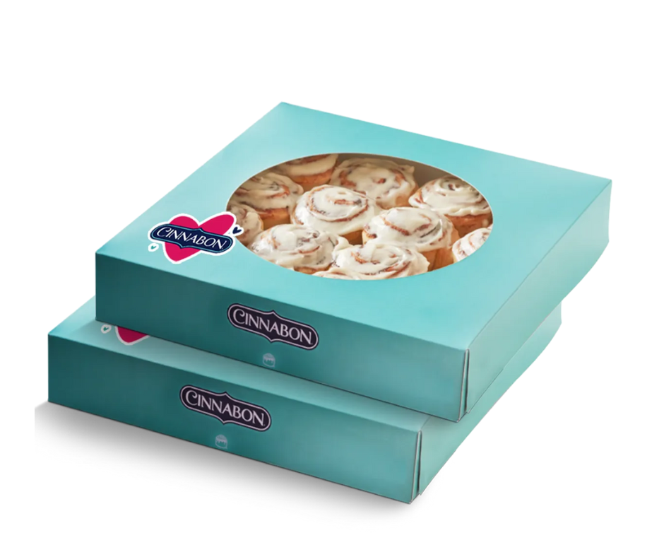Rollos de canela en trozos cubierto con nuestro glaseado frosting.