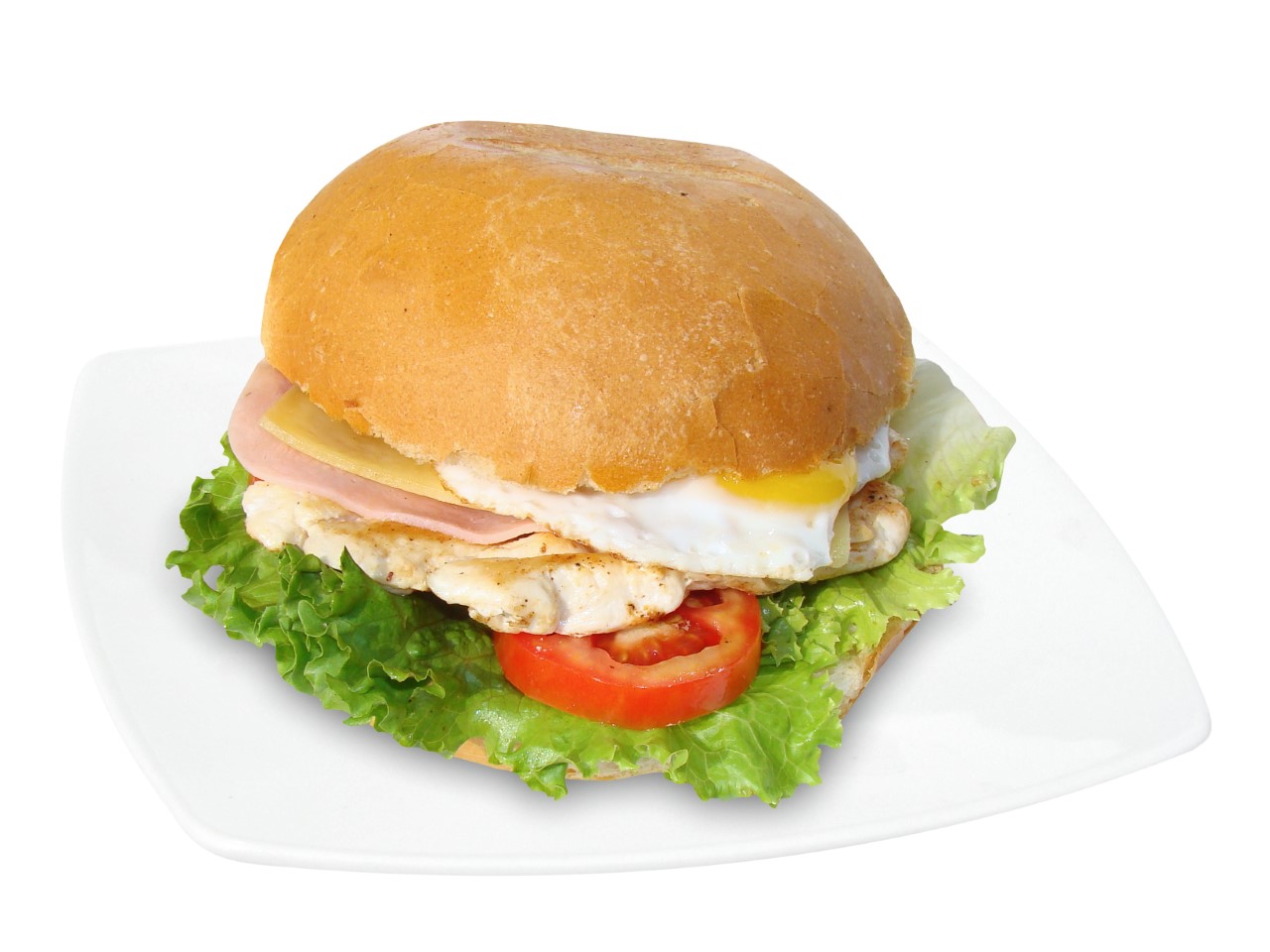 Hamburguesa, jamón, queso y huevo.