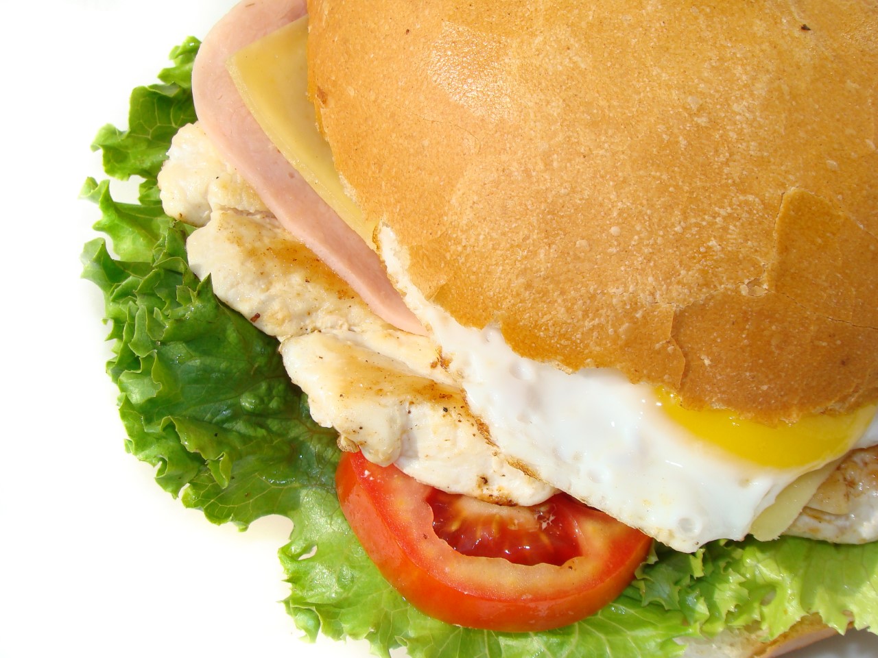 Pollo, jamón, queso y huevo.