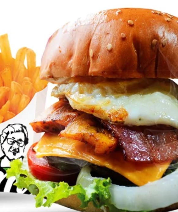 Hamburguesa de filete pollo & carne, huevo, queso, jamón & vegetales