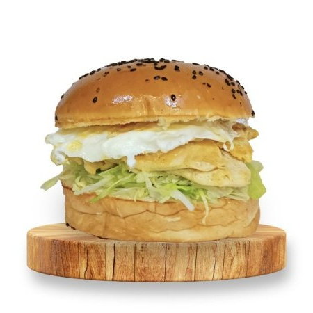 Hamburguesa de Casa, 2 Quesos, Plátano, Huevo, Salsas, Ensalada y Gaseosa