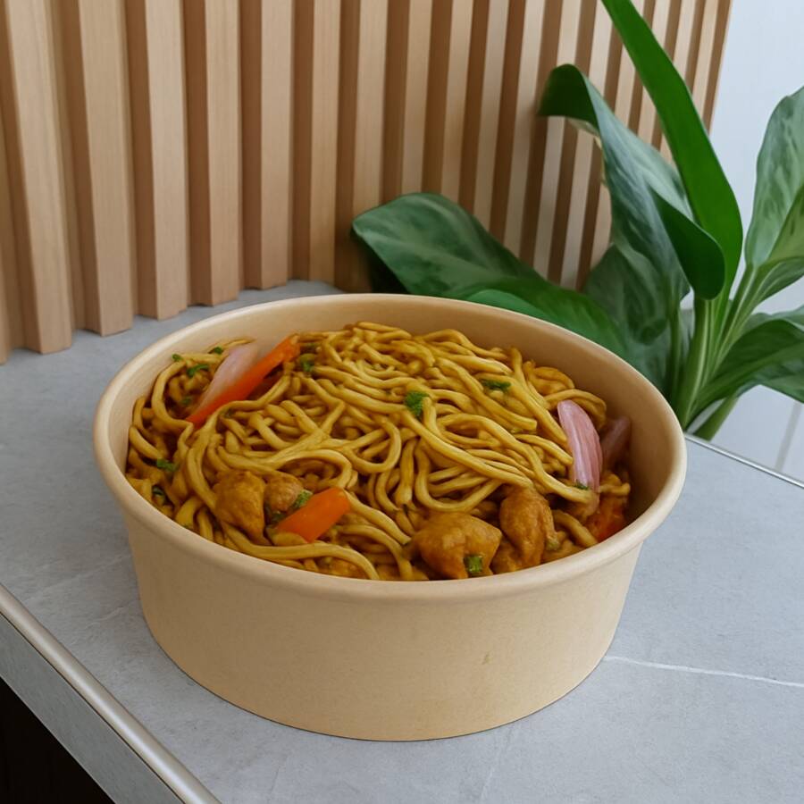 Fideos salteados al wok con pollo jugoso y verduras